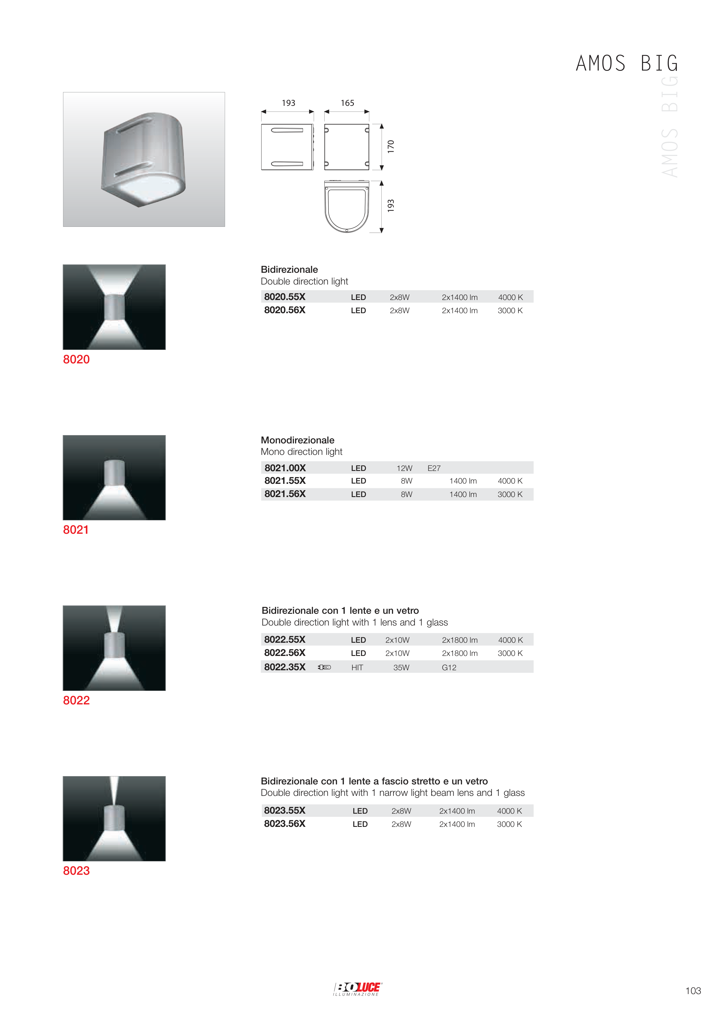 Bidirezionale con 1 lente a fascio stretto e un vetro