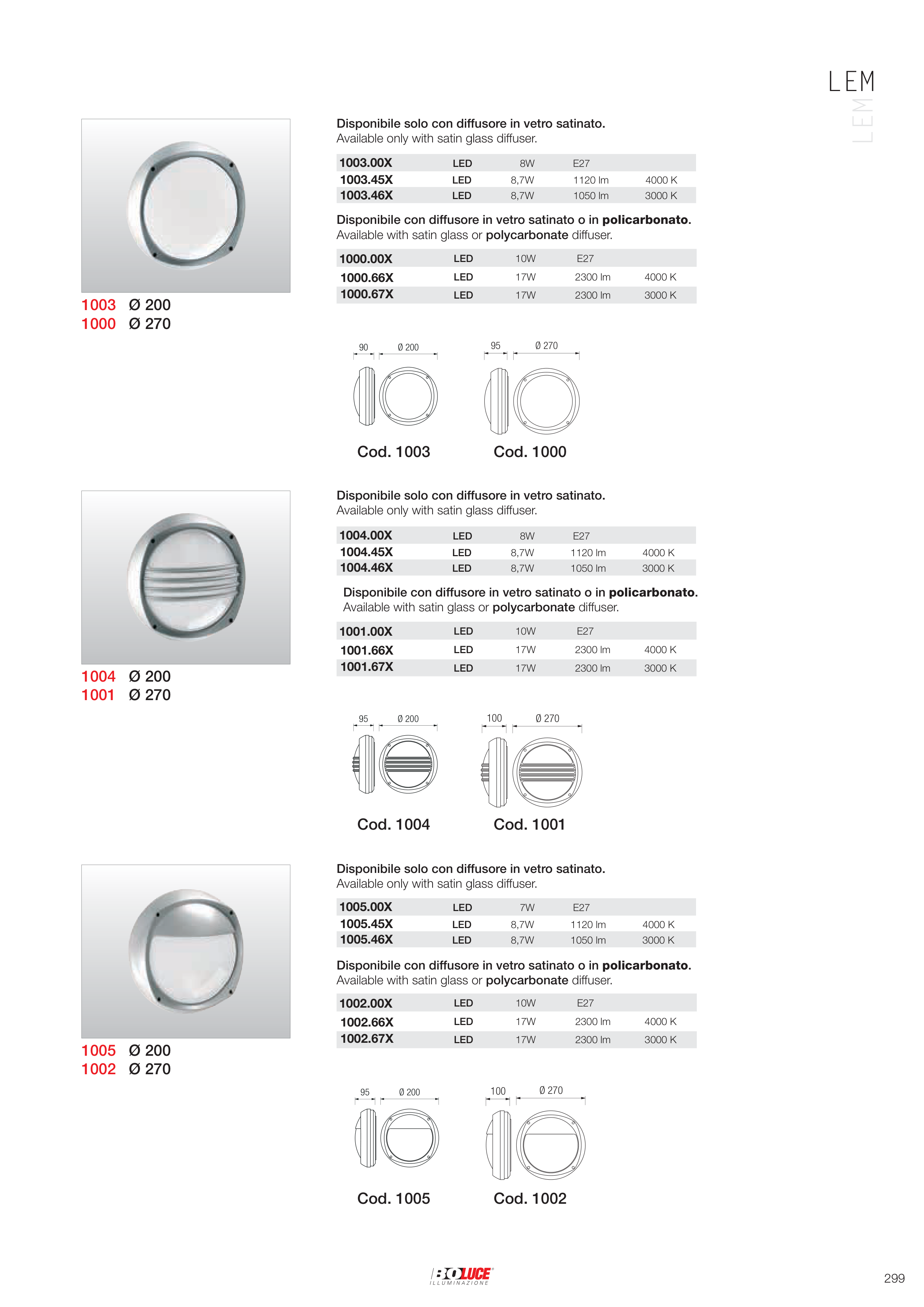 Available with satin glass or polycarbonate diffuser.