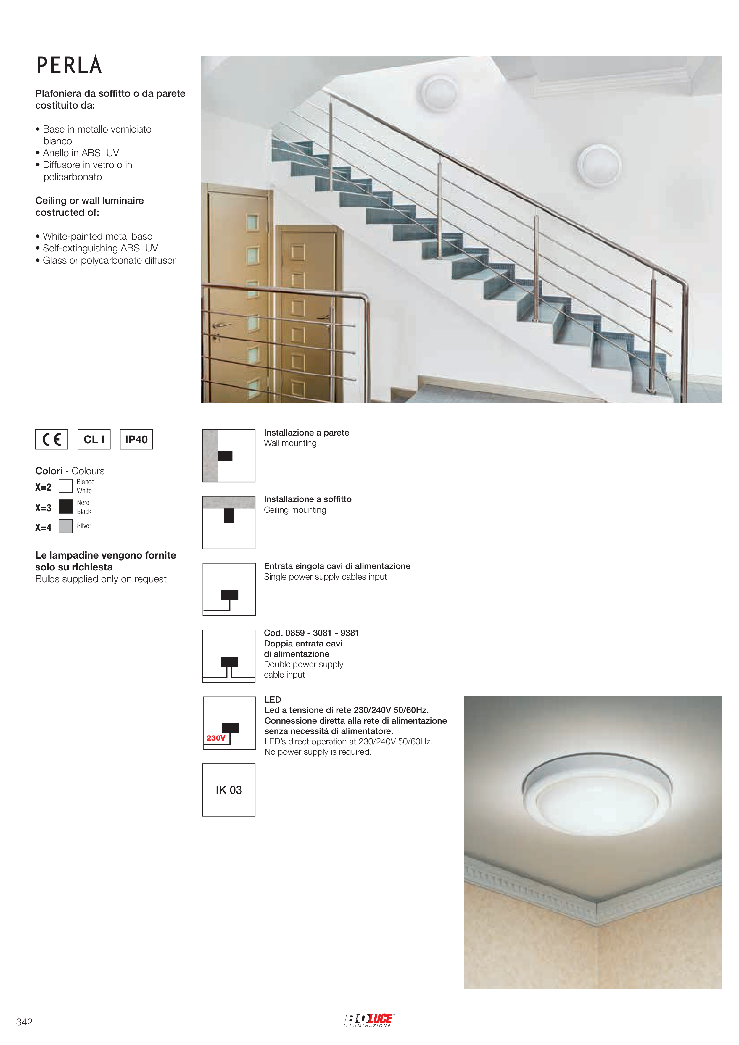 Led a tensione di rete 230/240V 50/60Hz.