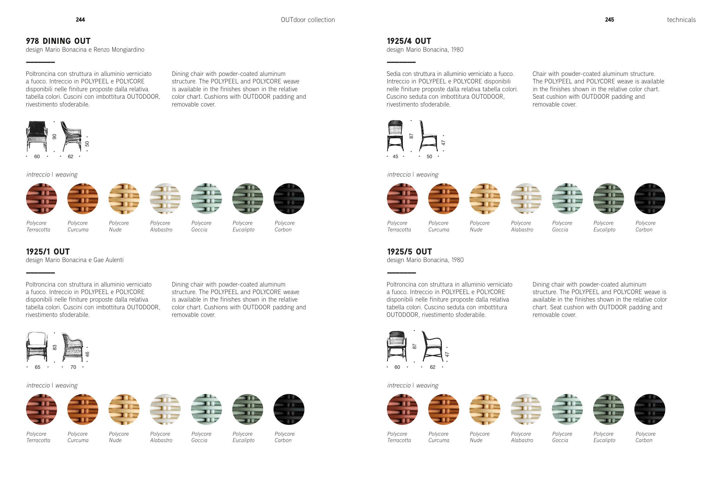 color chart. Cushions with OUTDOOR padding and