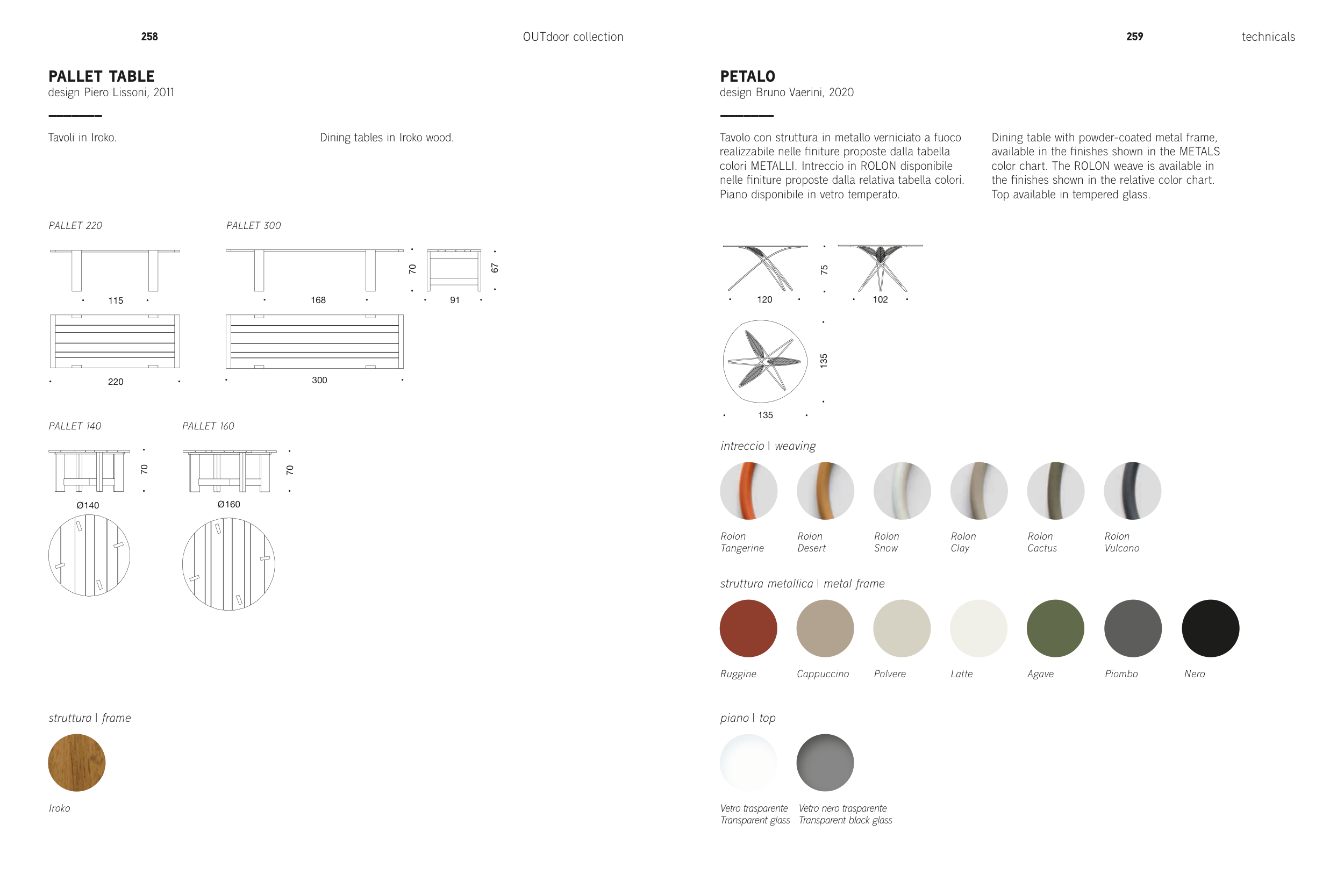 Tavoli in Iroko.