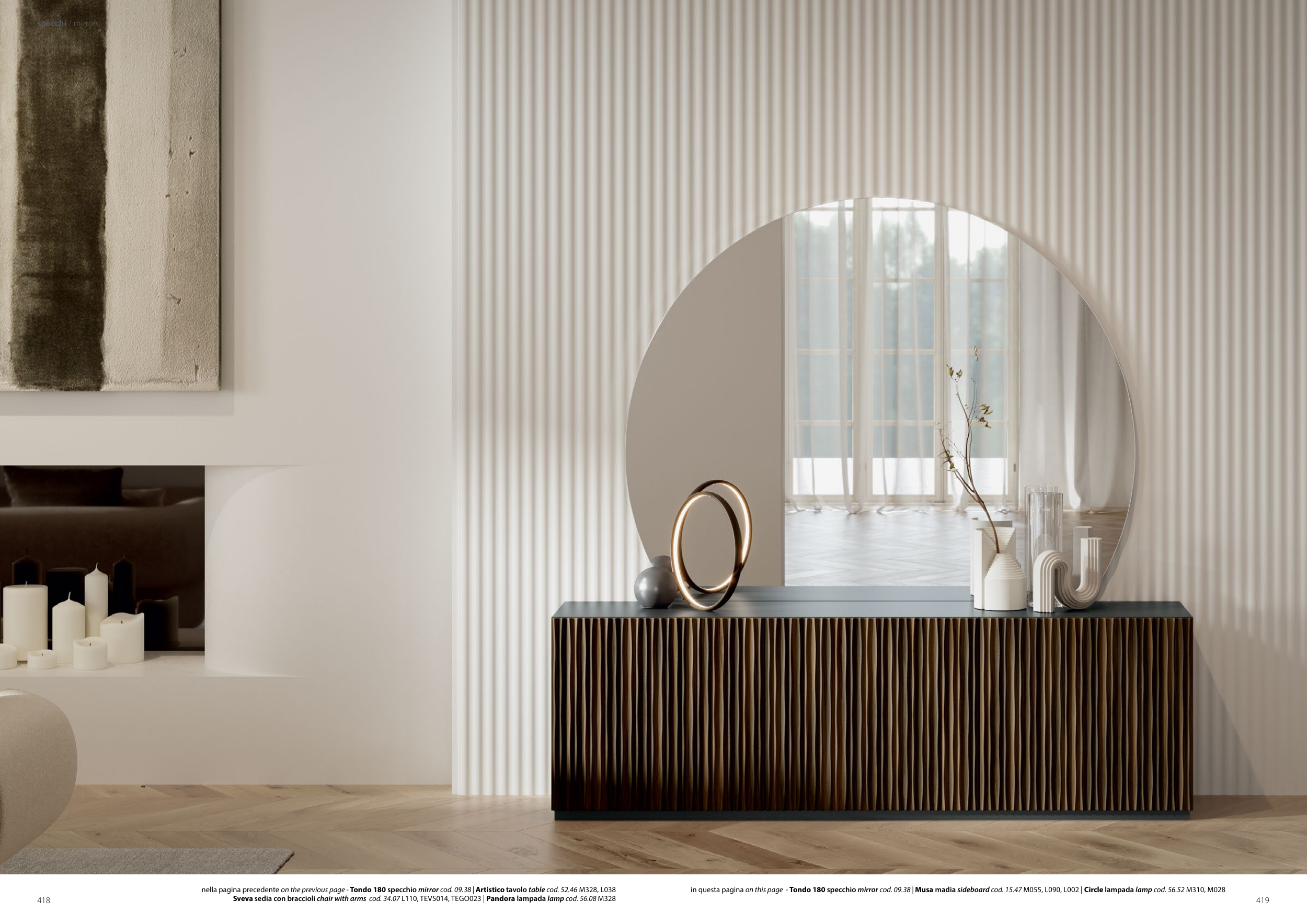 in questa pagina on this page - Tondo 180 specchio mirror cod. 09.38 | Musa madia sideboard cod. 15.47 M055, L090, L002 | Circle lampada lamp cod. 56.52 M310, M028