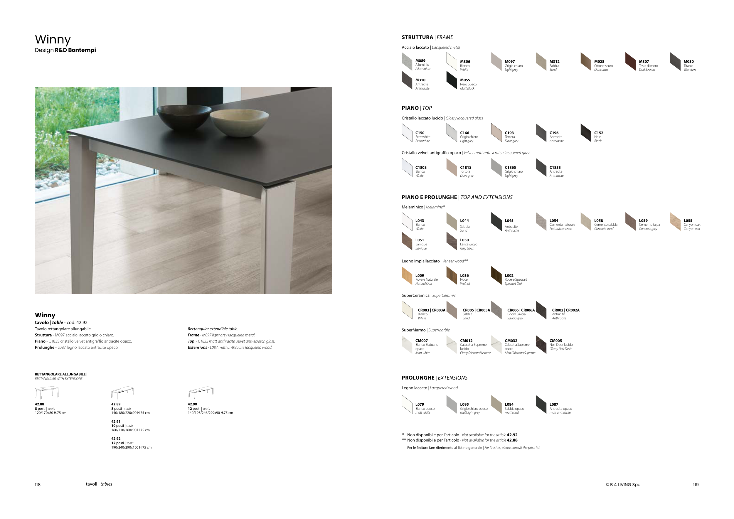 Per le finiture fare riferimento al listino generale | For finishes, please consult the price list