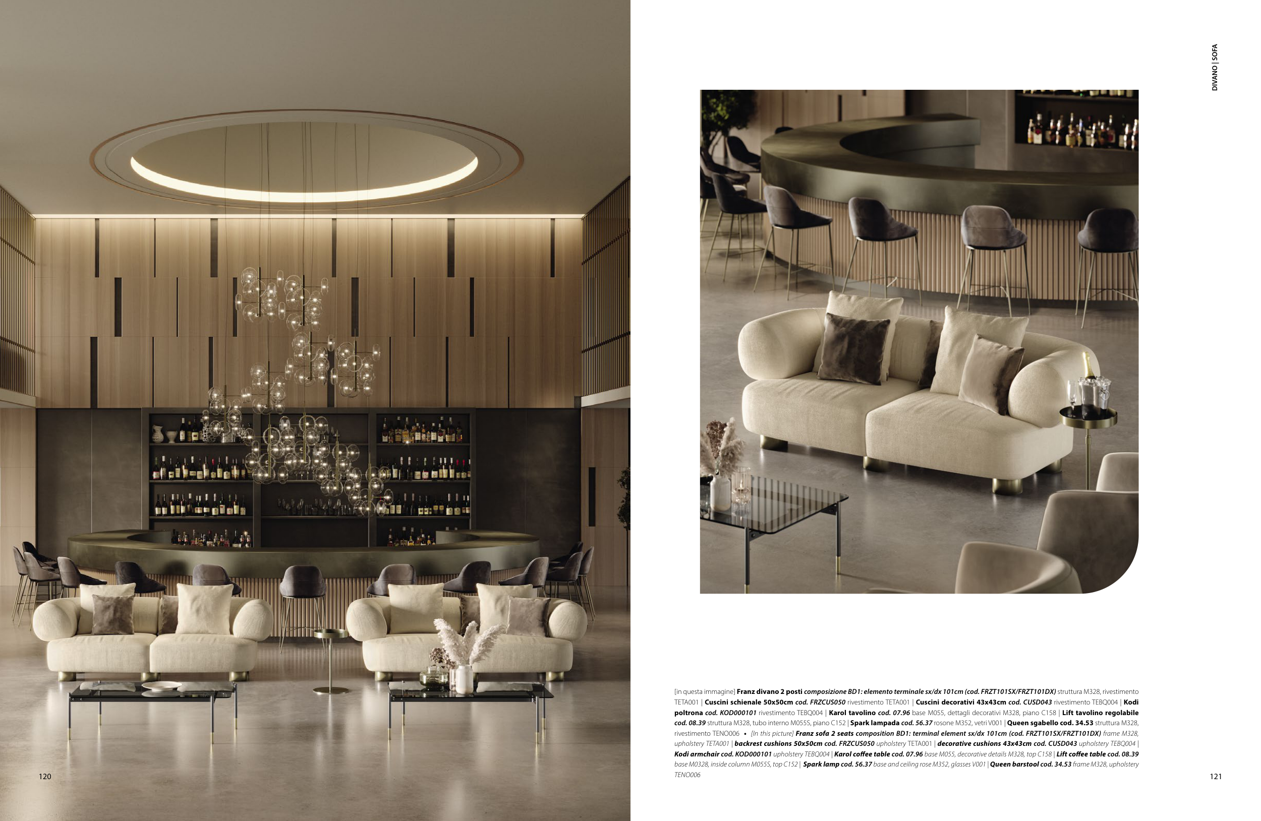 upholstery TETA001 | backrest cushions 50x50cm cod. FRZCUS050 upholstery TETA001 | decorative cushions 43x43cm cod. CUSD043 upholstery TEBQ004 |