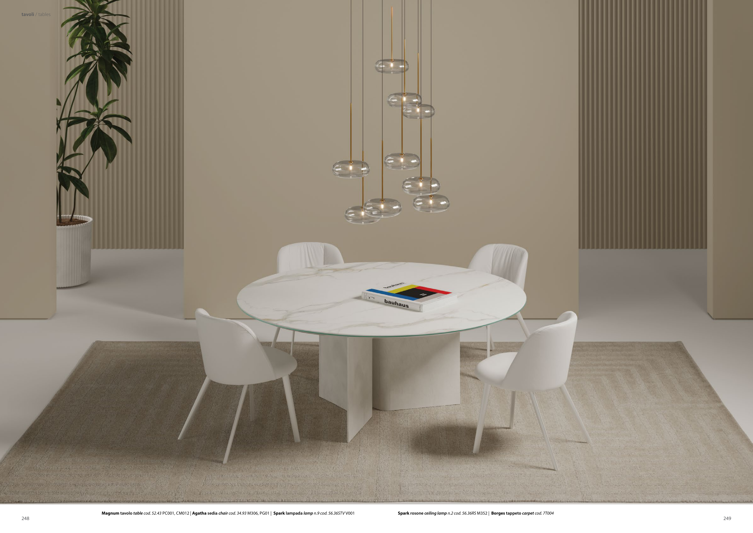 Magnum tavolo table cod. 52.43 PC001, CM012 | Agatha sedia chair cod. 34.93 M306, PG01 | Spark lampada lamp n.9 cod. 56.36STV V001