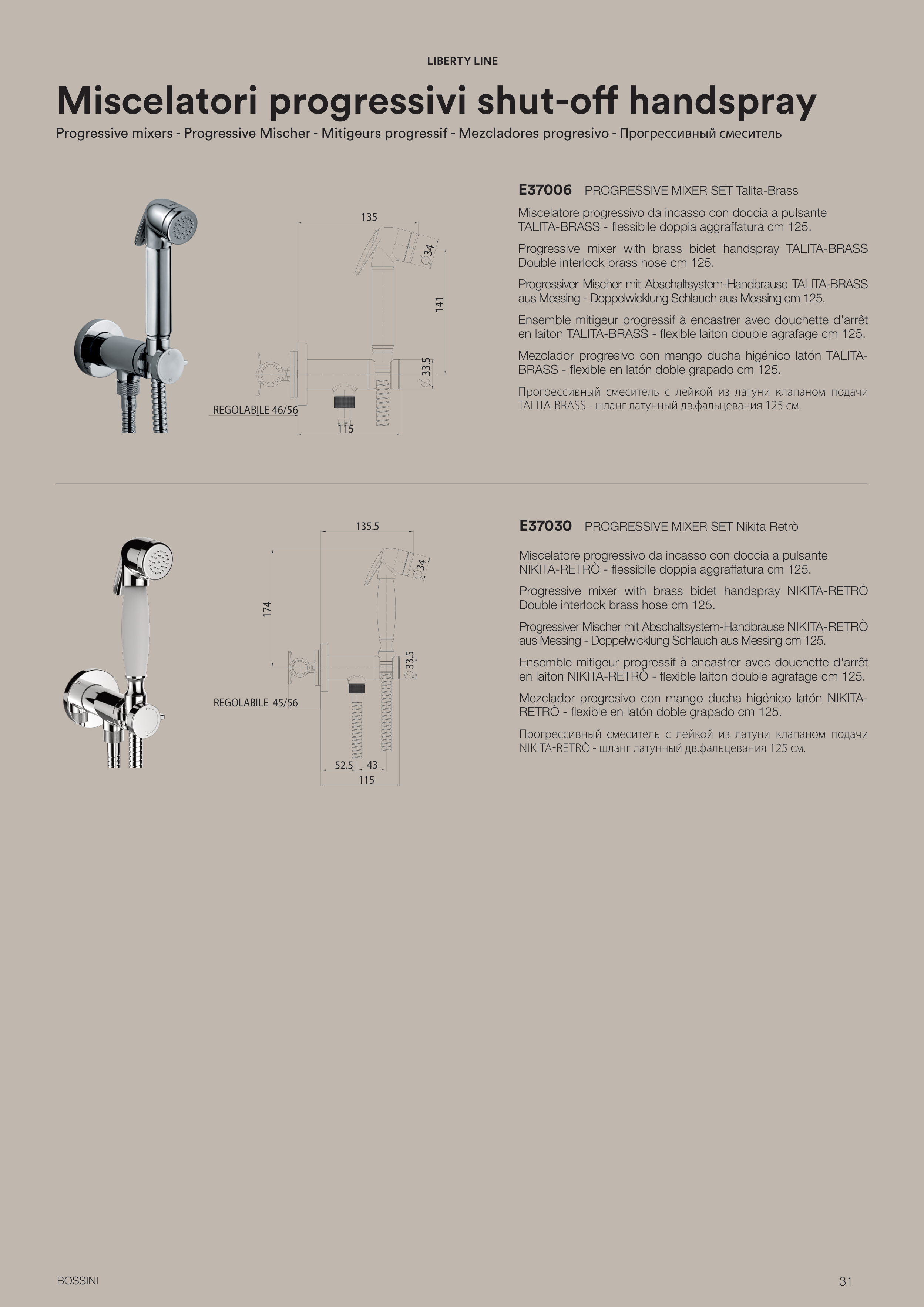 Progressive mixer with brass bidet handspray TALITA-BRASS