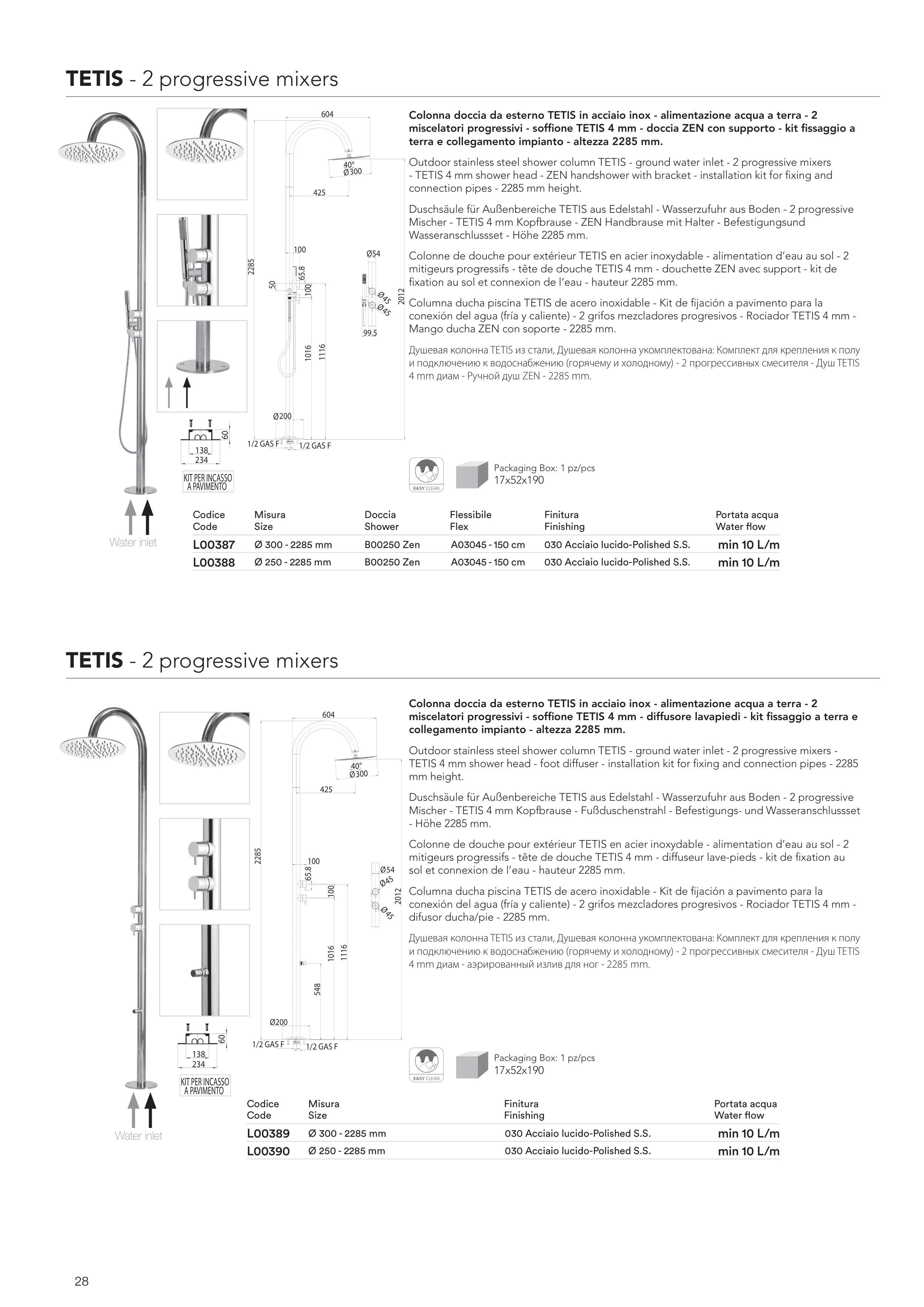 miscelatori progressivi - soffione TETIS 4 mm - diffusore lavapiedi - kit fissaggio a terra e