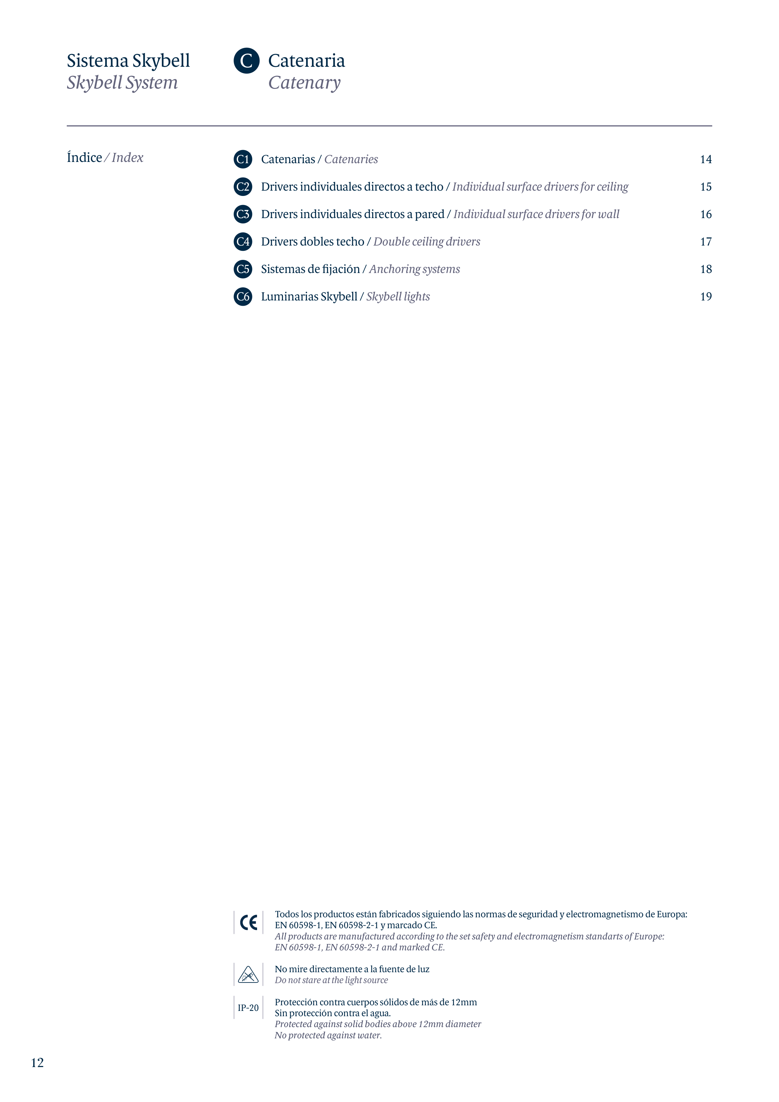 EN 60598-1, EN 60598-2-1 y marcado CE.