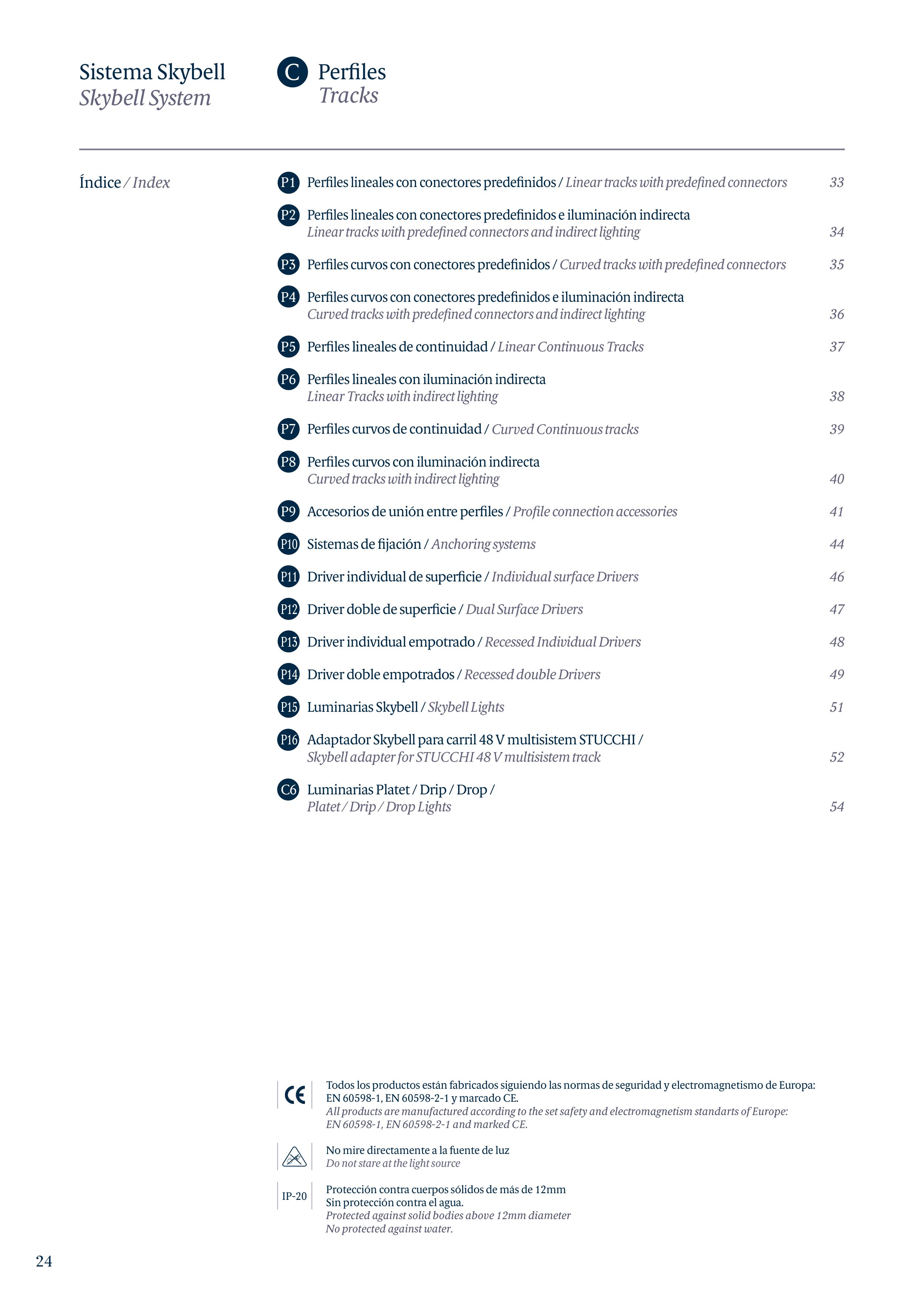 P1 Perfiles lineales con conectores predefinidos / Linear tracks with predefined connectors
