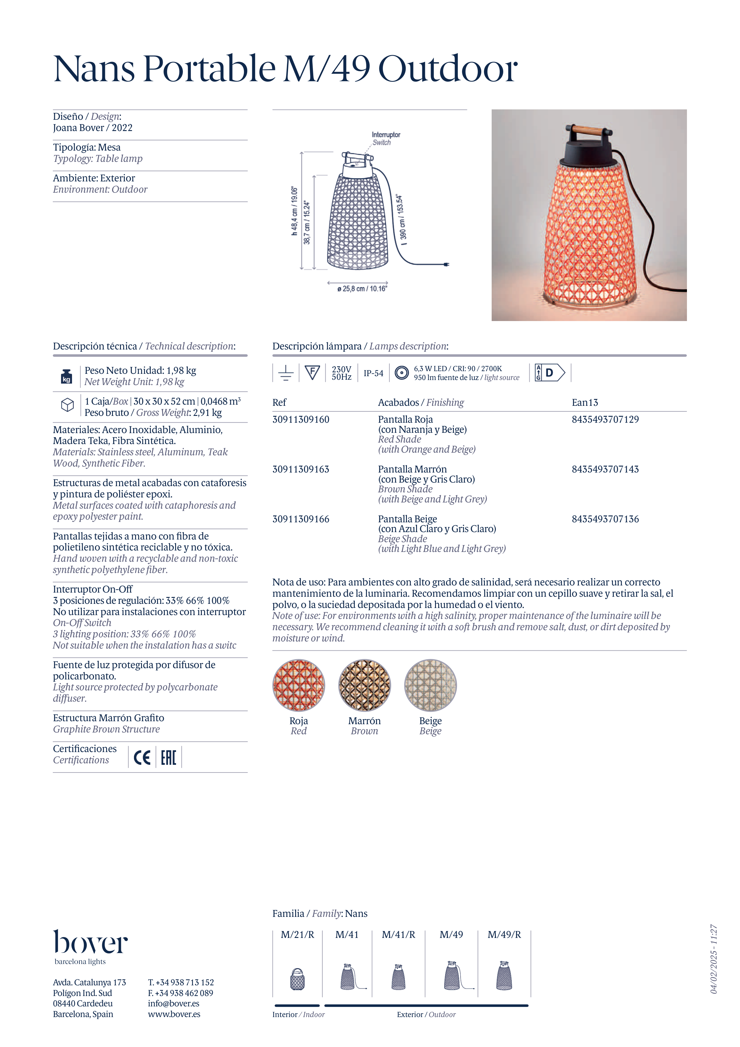 mantenimiento de la luminaria. Recomendamos limpiar con un cepillo suave y retirar la sal, el