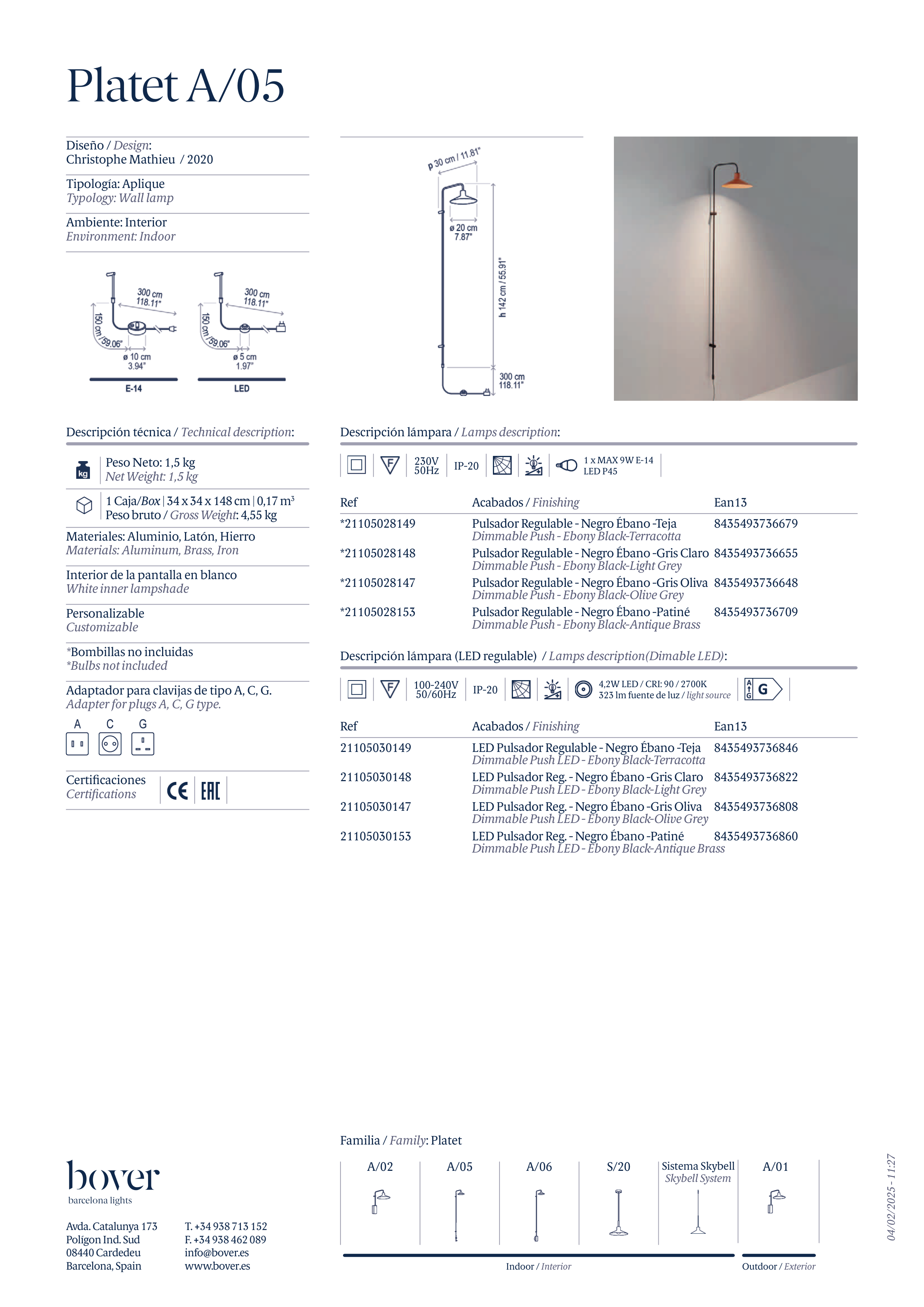 Descripción lámpara (LED regulable) / Lamps description(Dimable LED):