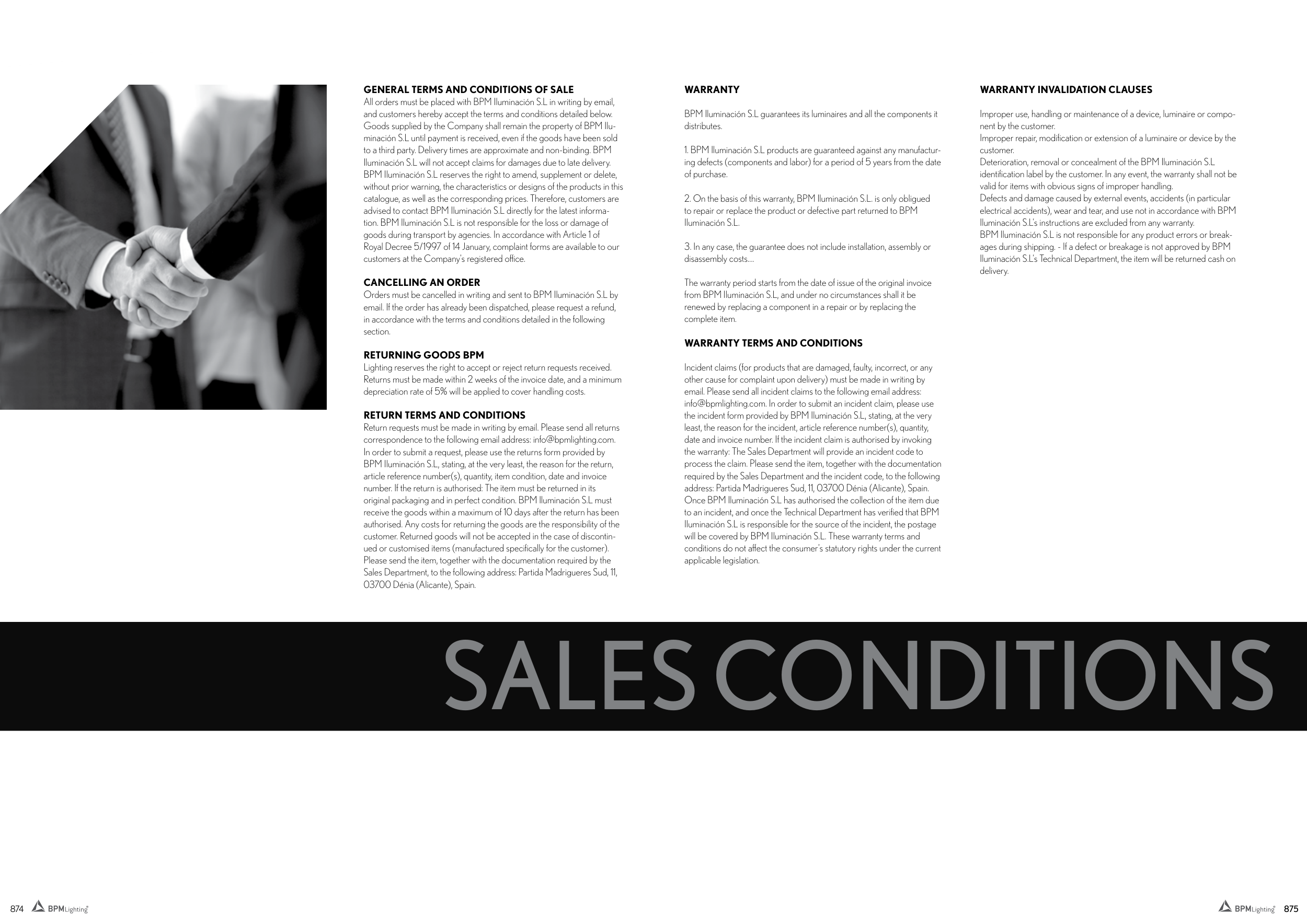 Orders must be cancelled in writing and sent to BPM Iluminación S.L by