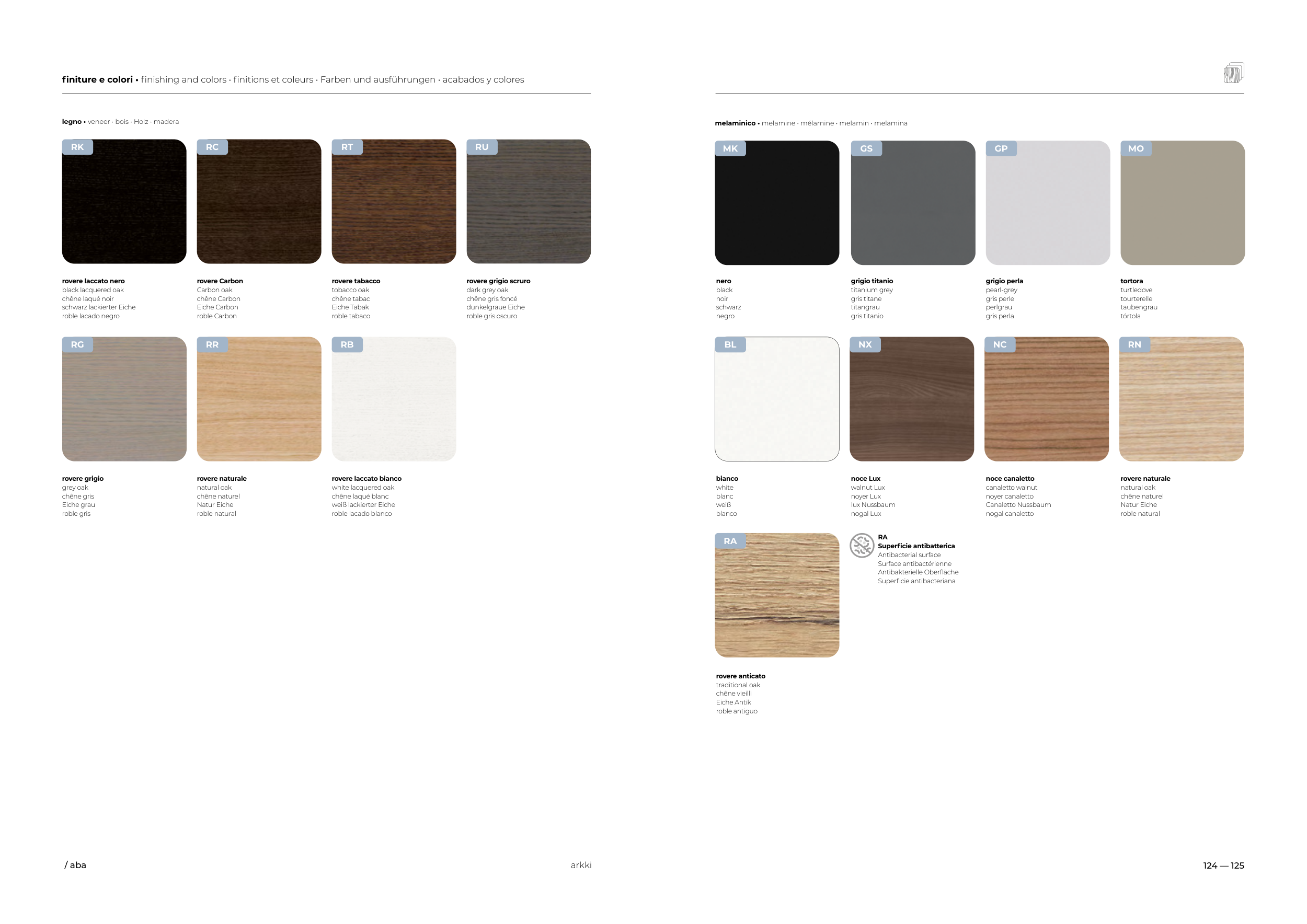 finiture e colori • finishing and colors • finitions et coleurs • Farben und ausführungen • acabados y colores