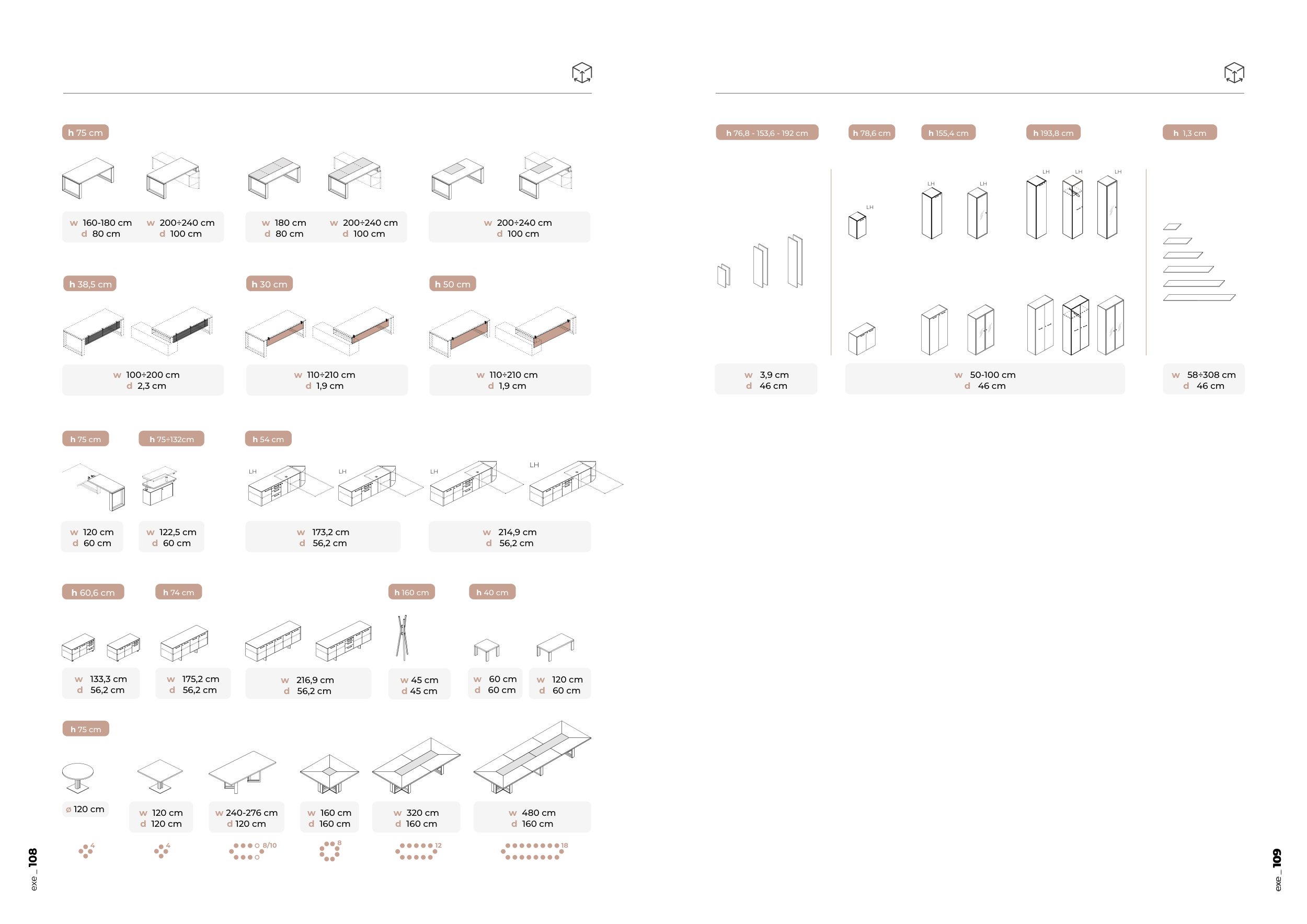 h 76,8 - 153,6 - 192 cm