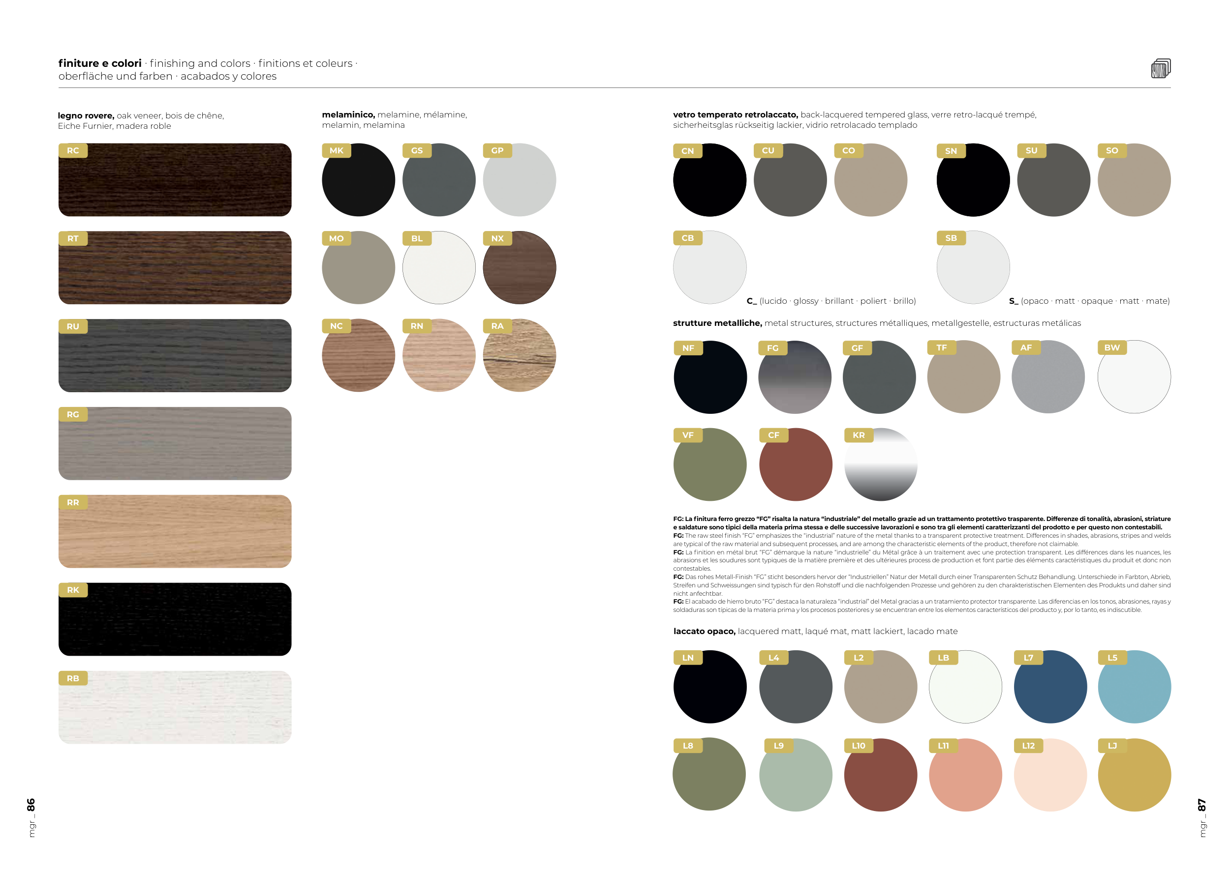finiture e colori ∙ finishing and colors ∙ finitions et coleurs ∙