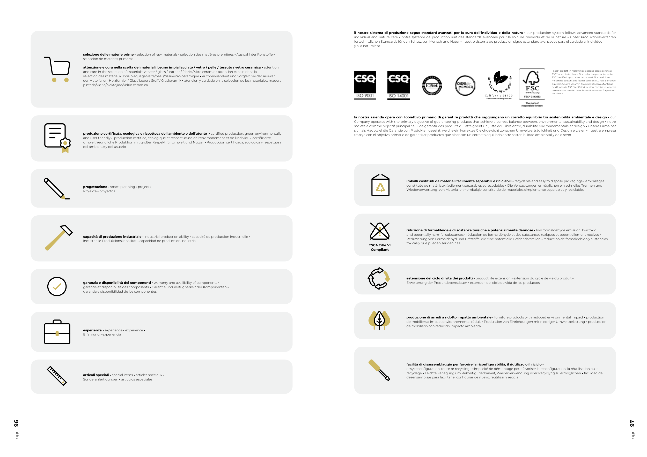 produzione di arredi a ridotto impatto ambientale • furniture products with reduced environmental impact • production