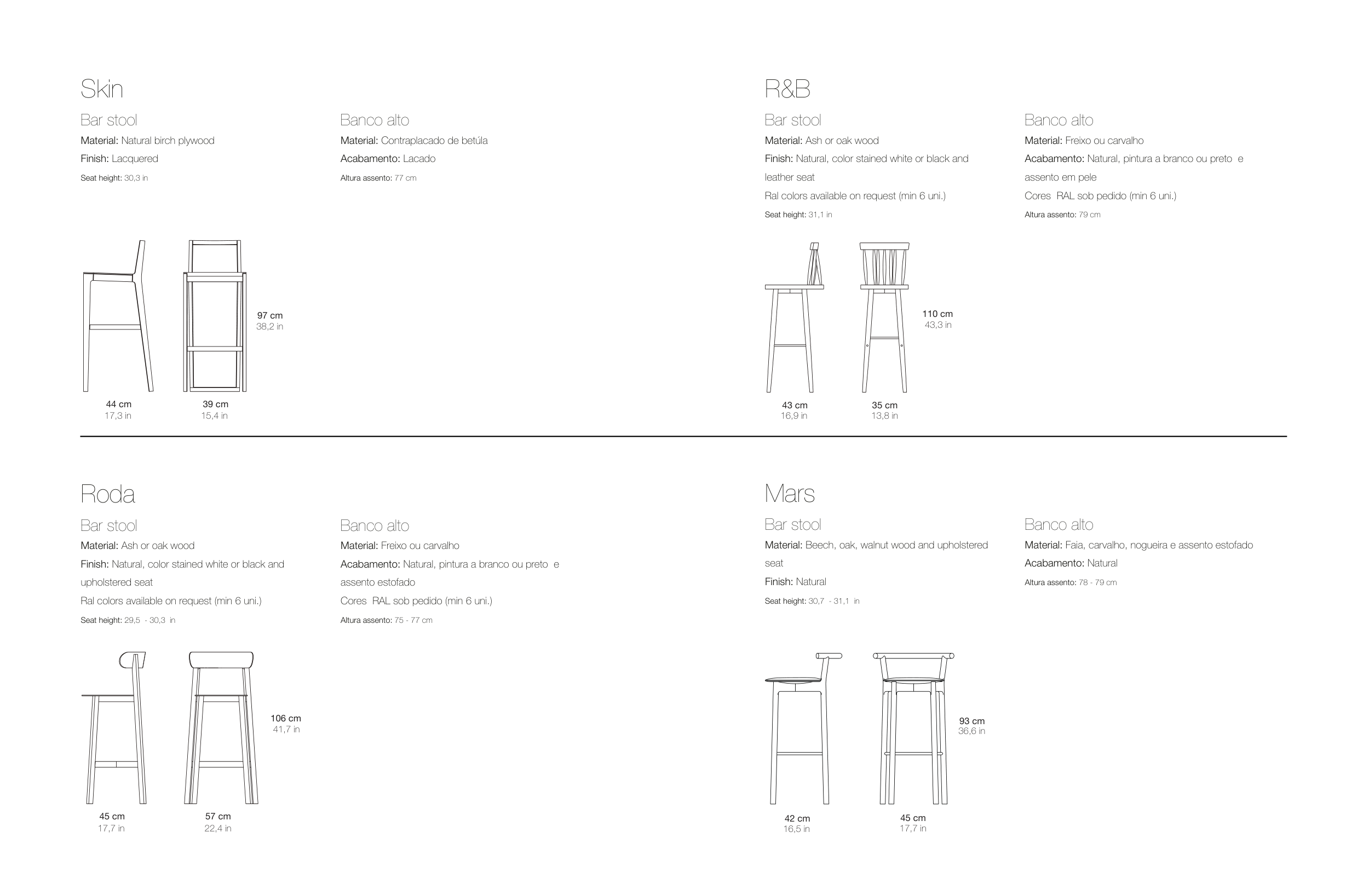 Material: Faia, carvalho, nogueira e assento estofado