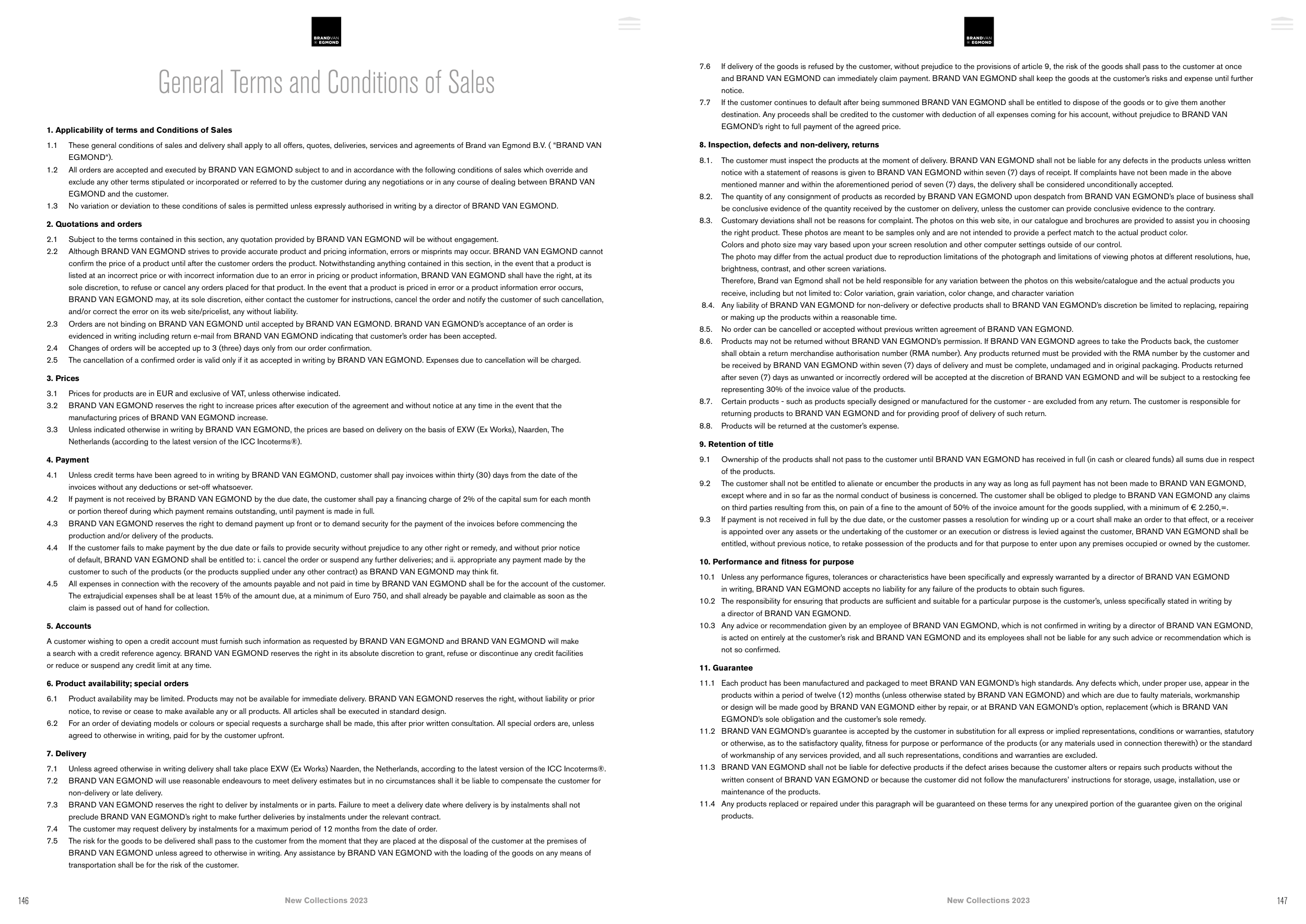 8.6. Products may not be returned without BRAND VAN EGMOND’s permission. If BRAND VAN EGMOND agrees to take the Products back, the customer
