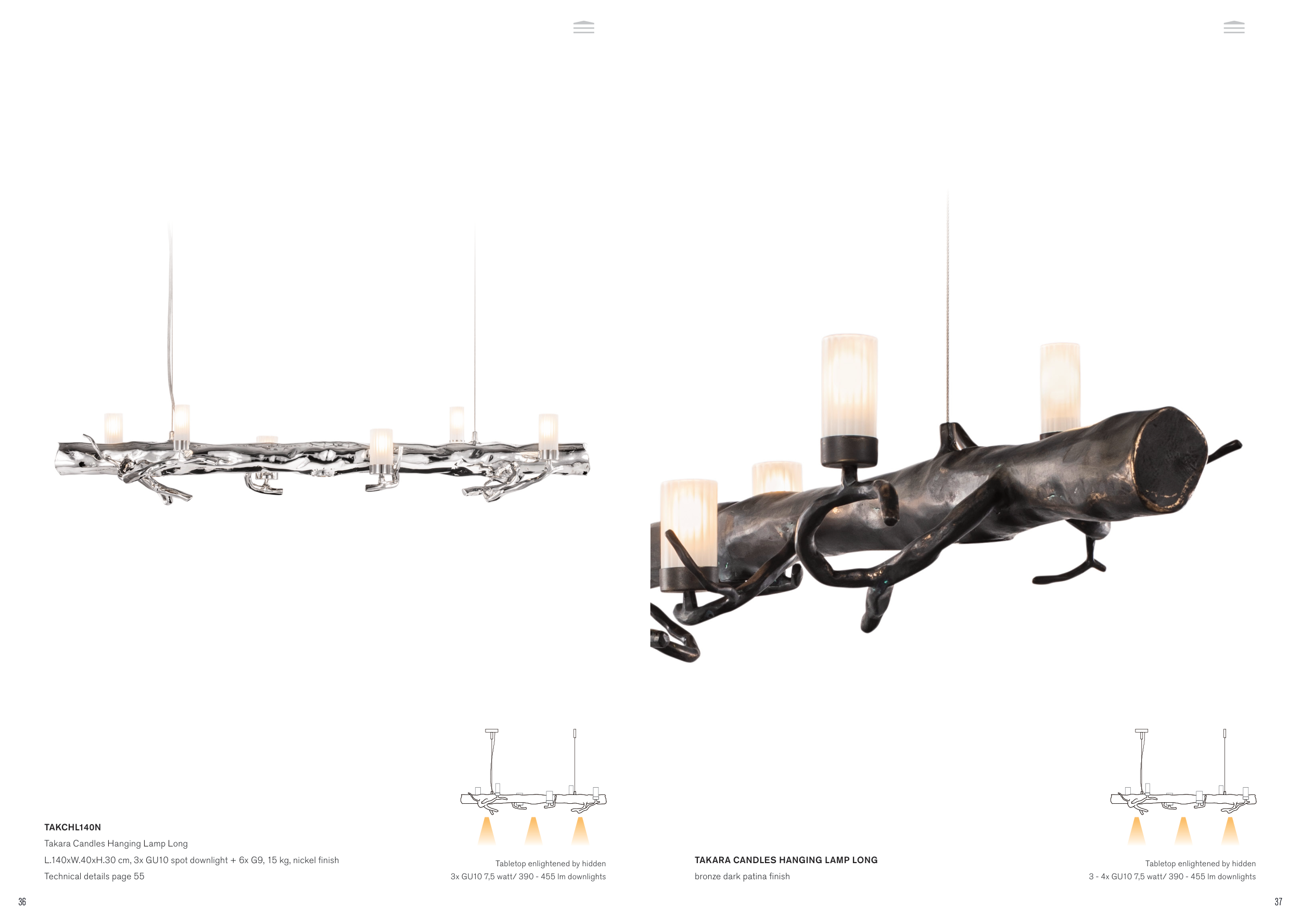L.140xW.40xH.30 cm, 3x GU10 spot downlight + 6x G9, 15 kg, nickel finish