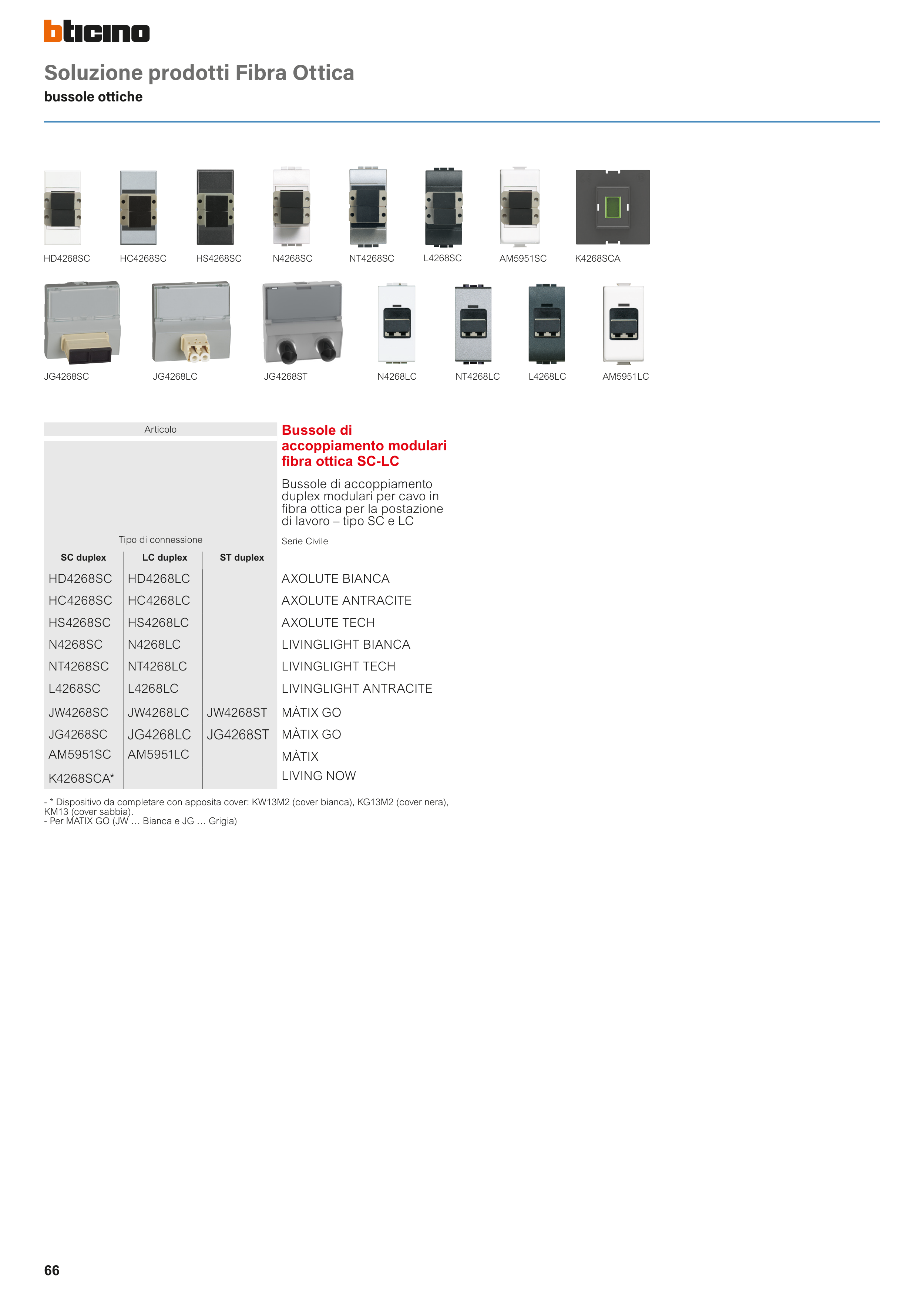 - * Dispositivo da completare con apposita cover: KW13M2 (cover bianca), KG13M2 (cover nera),
