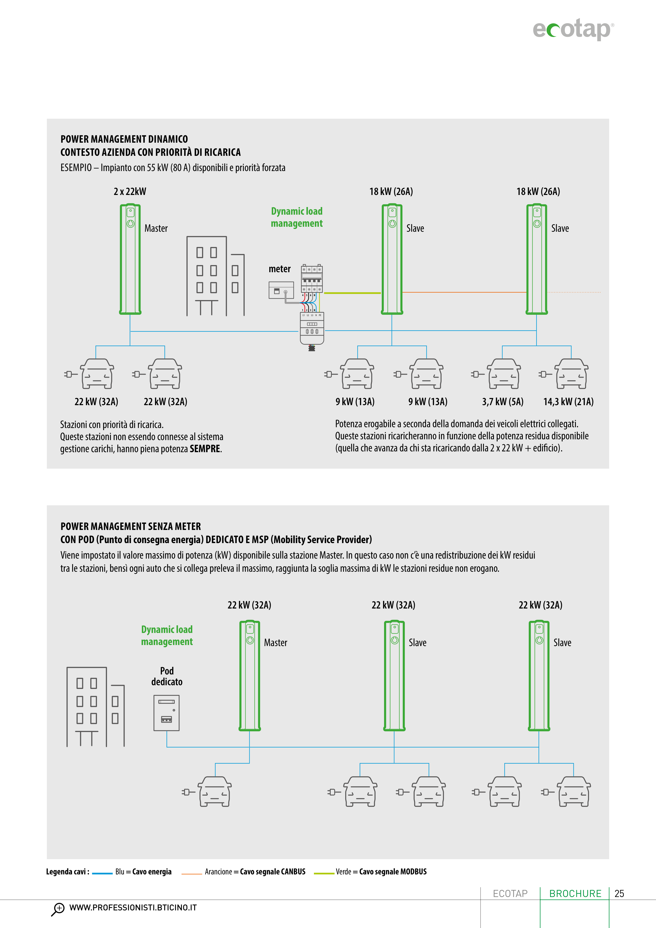 Potenza erogabile a seconda della domanda dei veicoli elettrici collegati.
