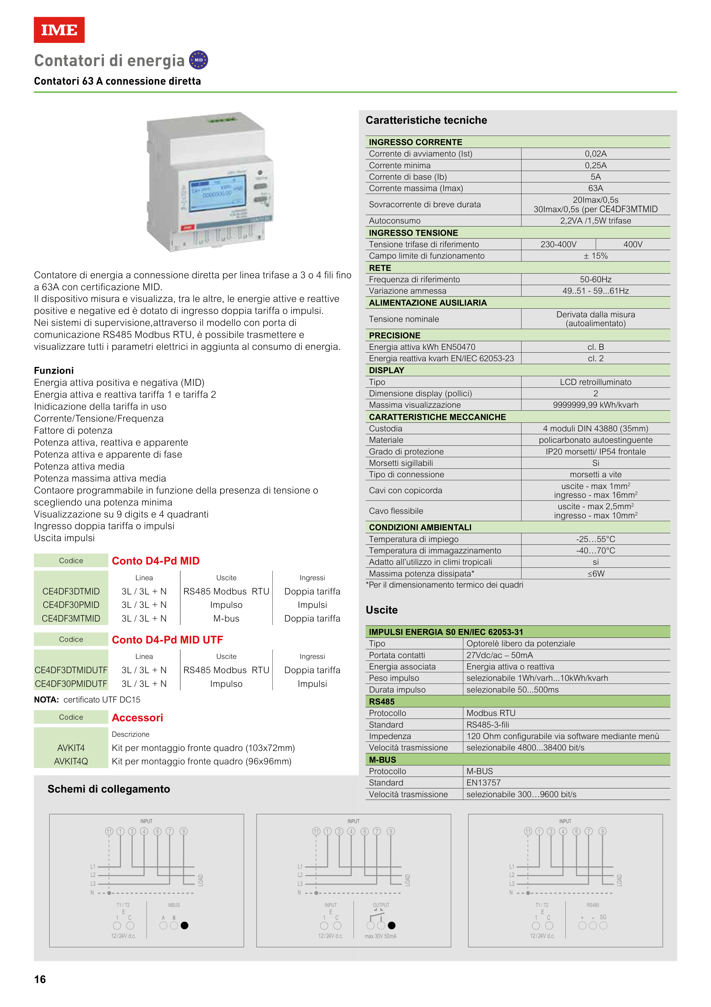 positive e negative ed è dotato di ingresso doppia tariffa o impulsi.