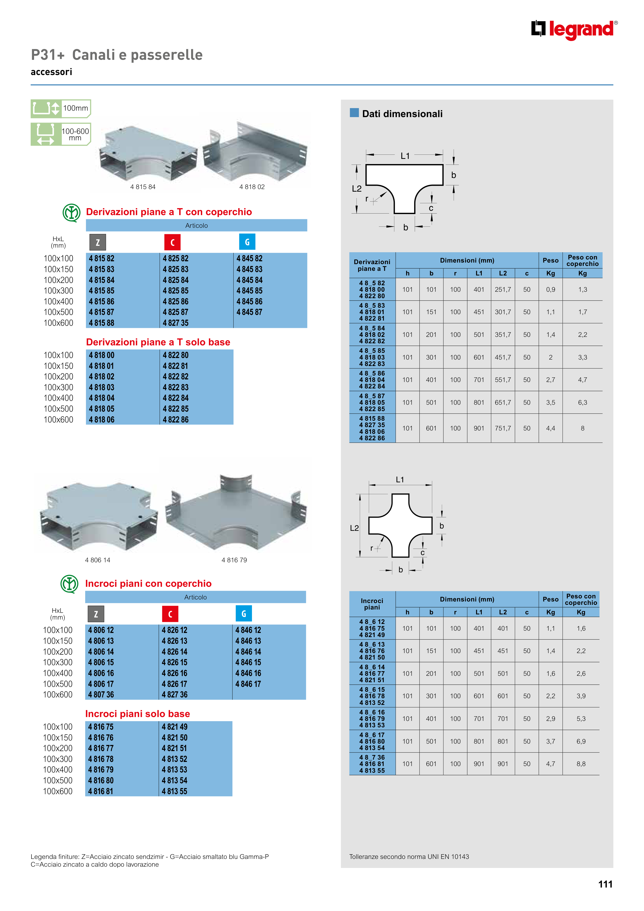 Legenda finiture: Z=Acciaio zincato sendzimir - G=Acciaio smaltato blu Gamma-P