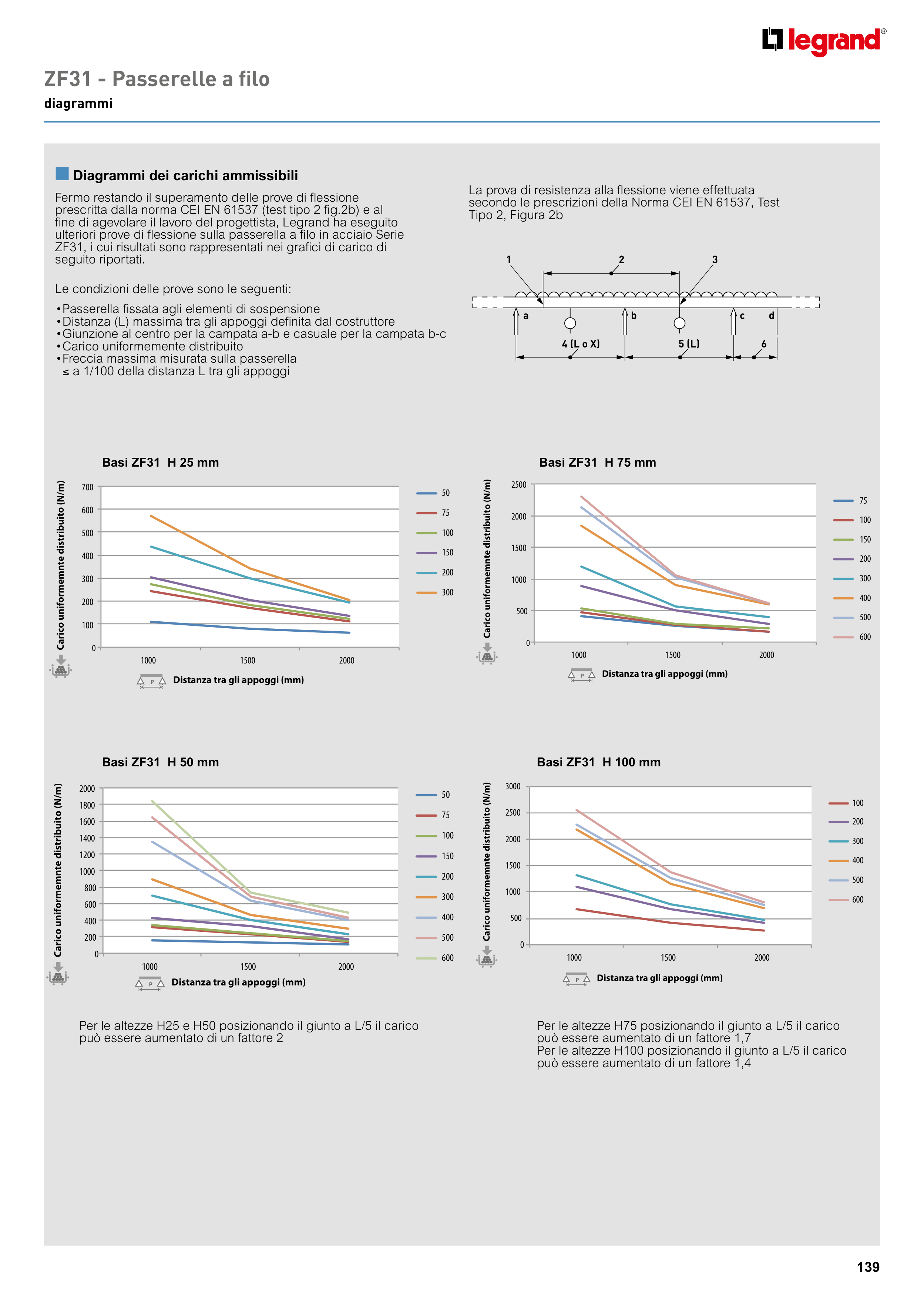 Per le altezze H25 e H50 posizionando il giunto a L/5 il carico