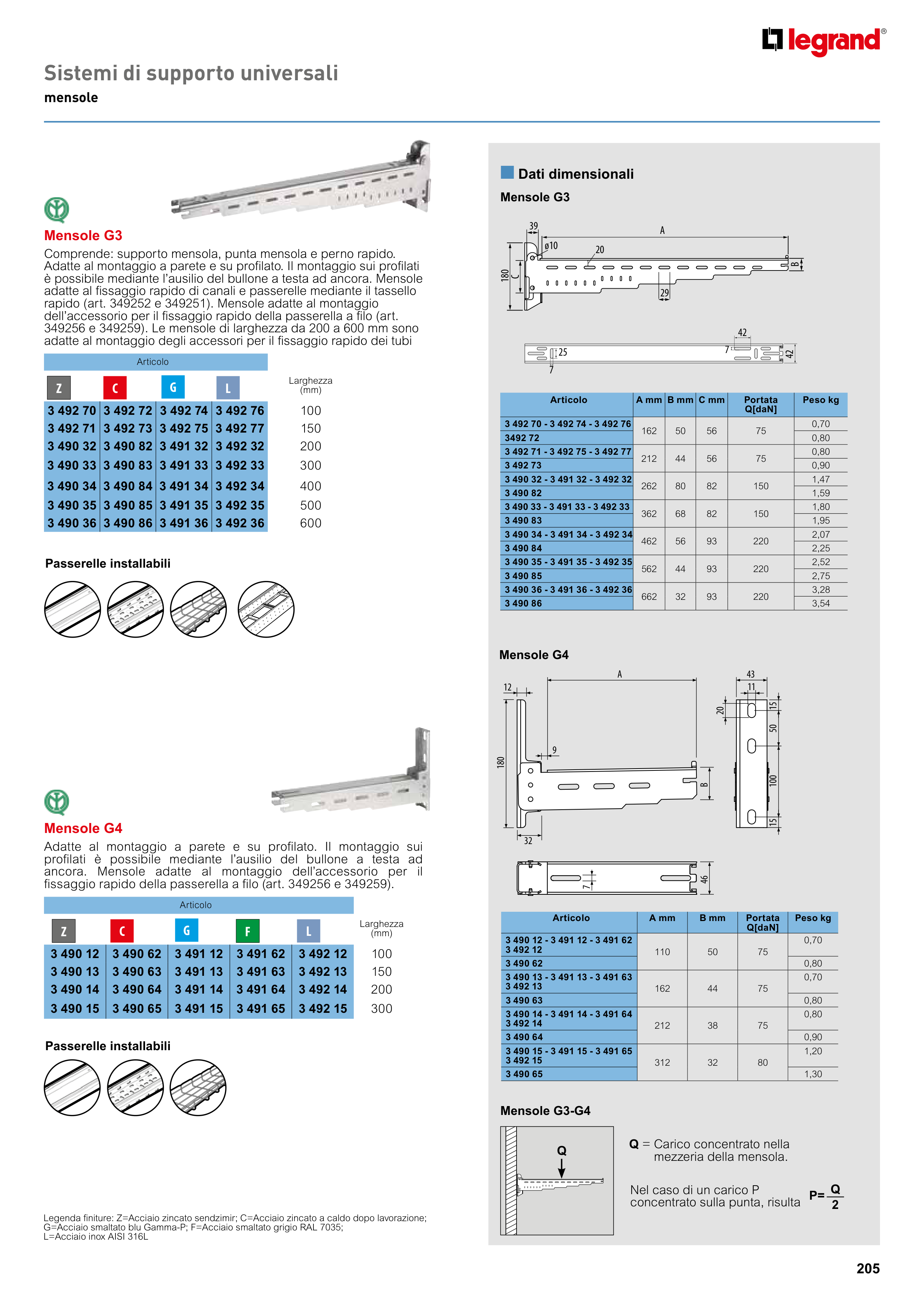 Legenda finiture: Z=Acciaio zincato sendzimir; C=Acciaio zincato a caldo dopo lavorazione;