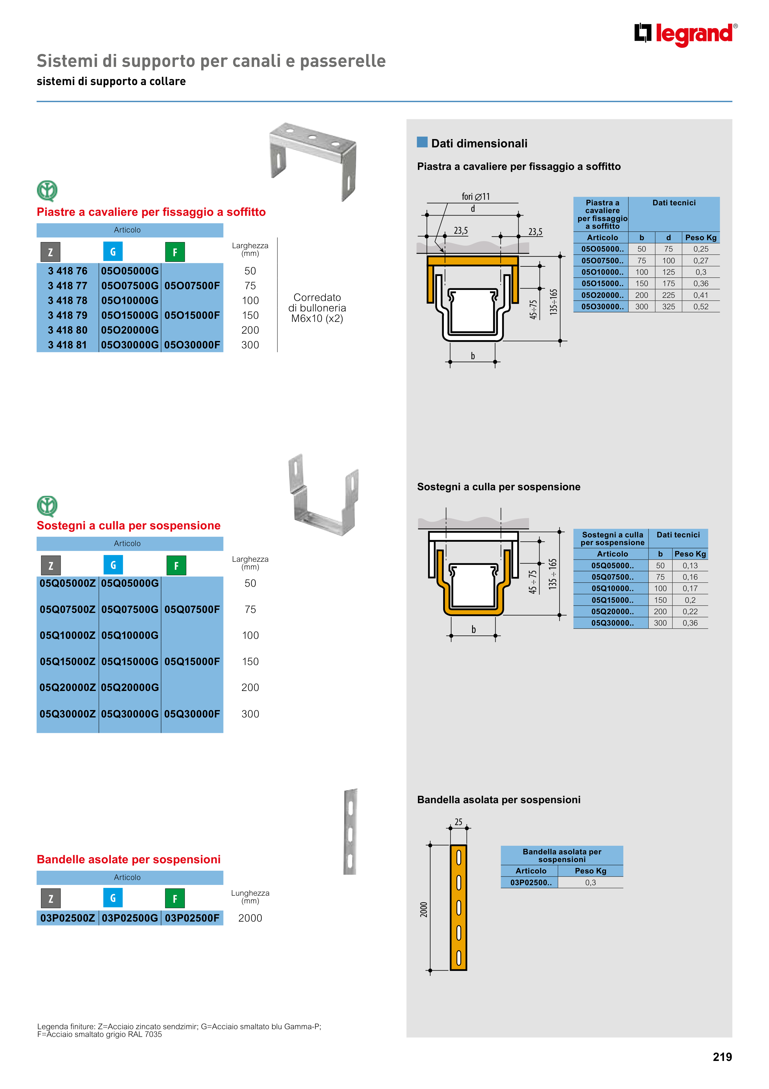 Legenda finiture: Z=Acciaio zincato sendzimir; G=Acciaio smaltato blu Gamma-P;