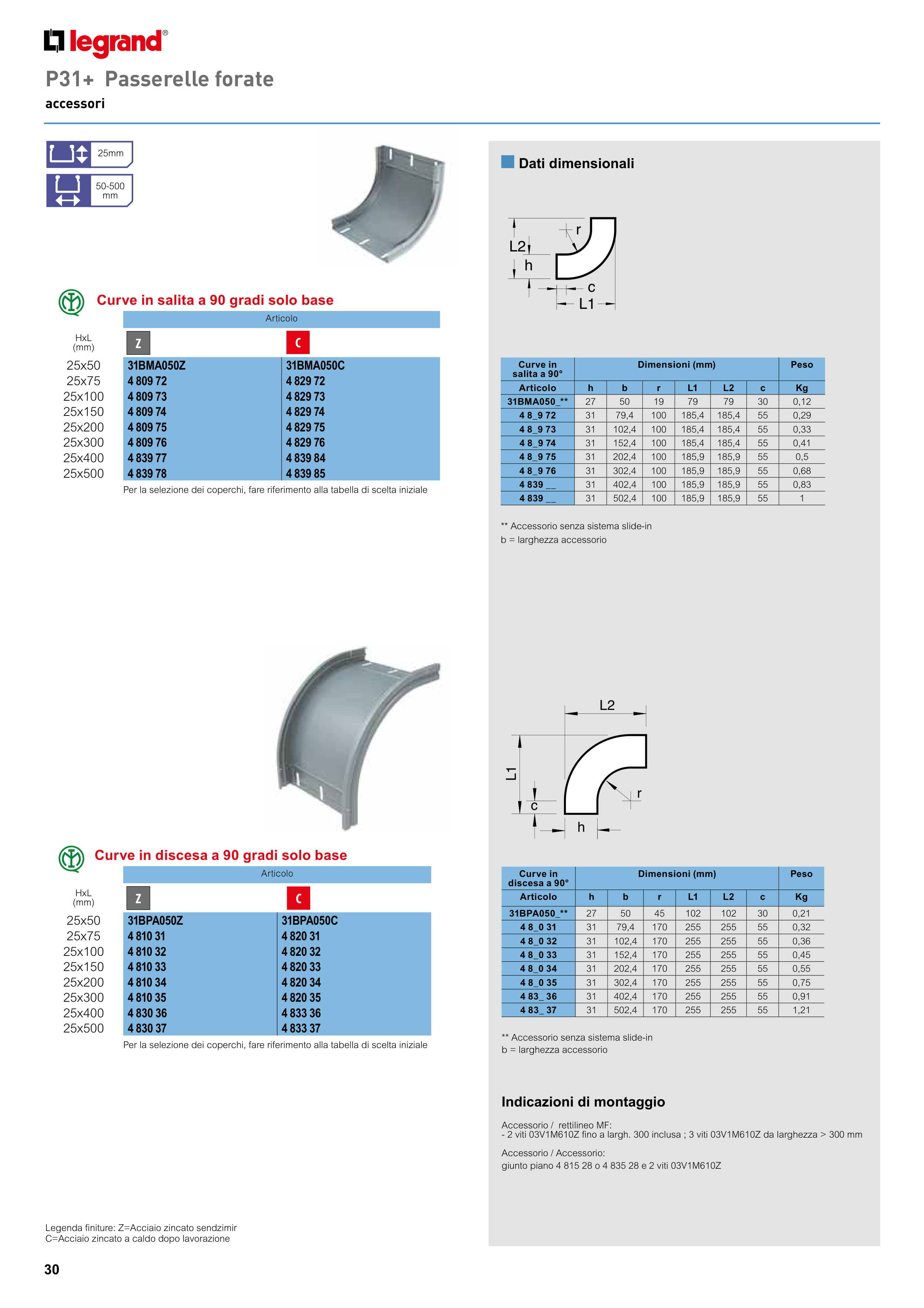 Legenda finiture: Z=Acciaio zincato sendzimir