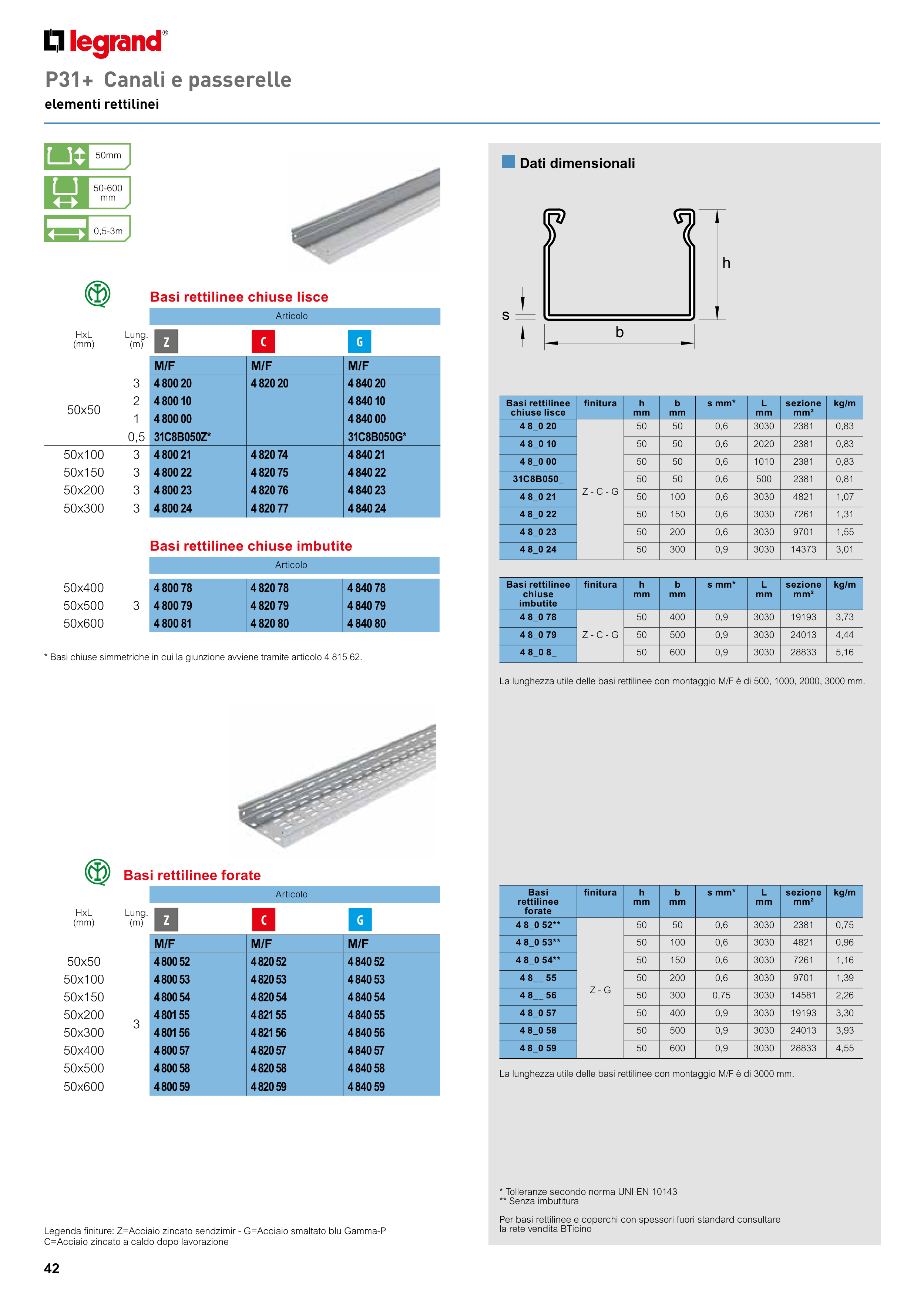 Legenda finiture: Z=Acciaio zincato sendzimir - G=Acciaio smaltato blu Gamma-P