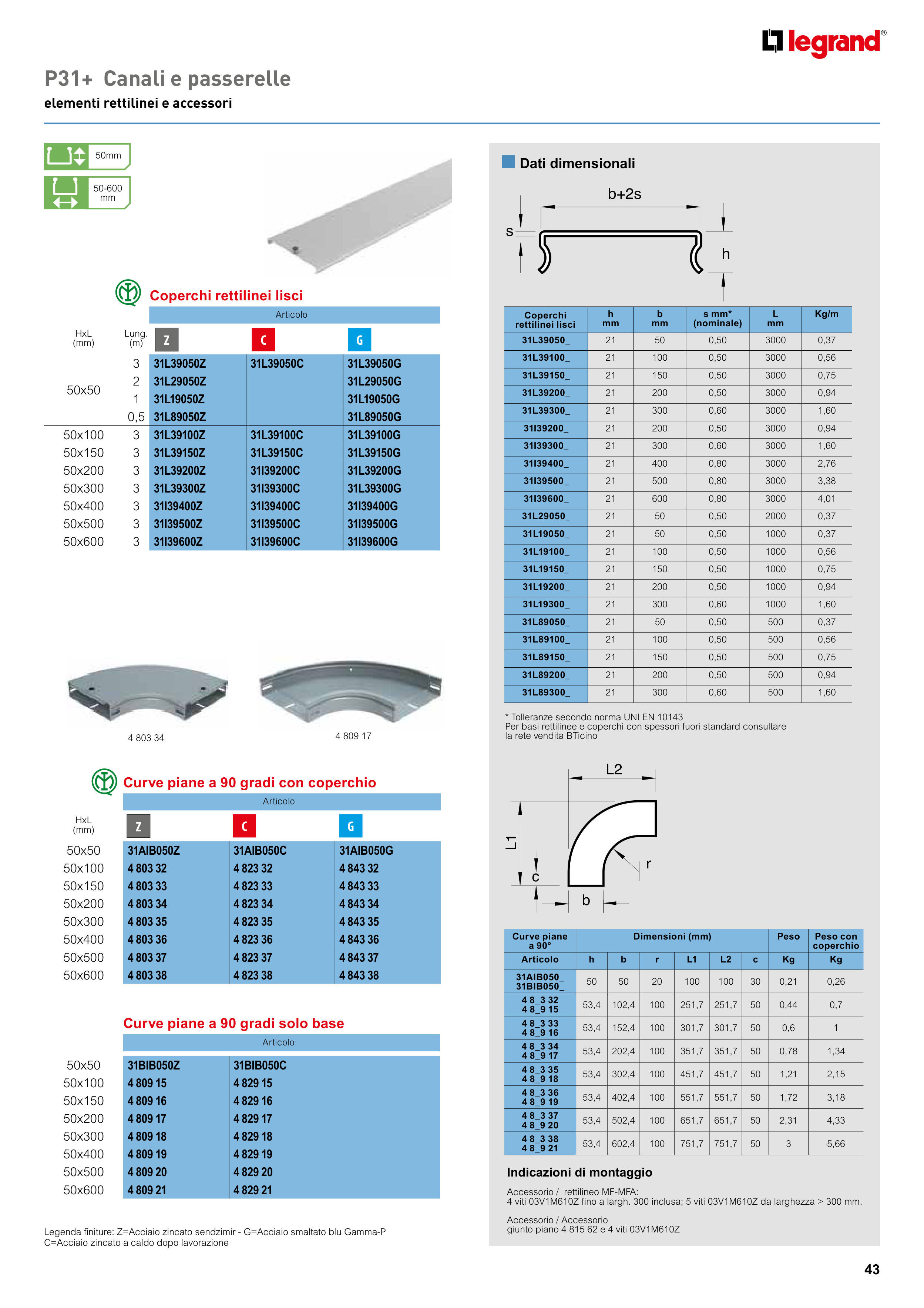 Legenda finiture: Z=Acciaio zincato sendzimir - G=Acciaio smaltato blu Gamma-P