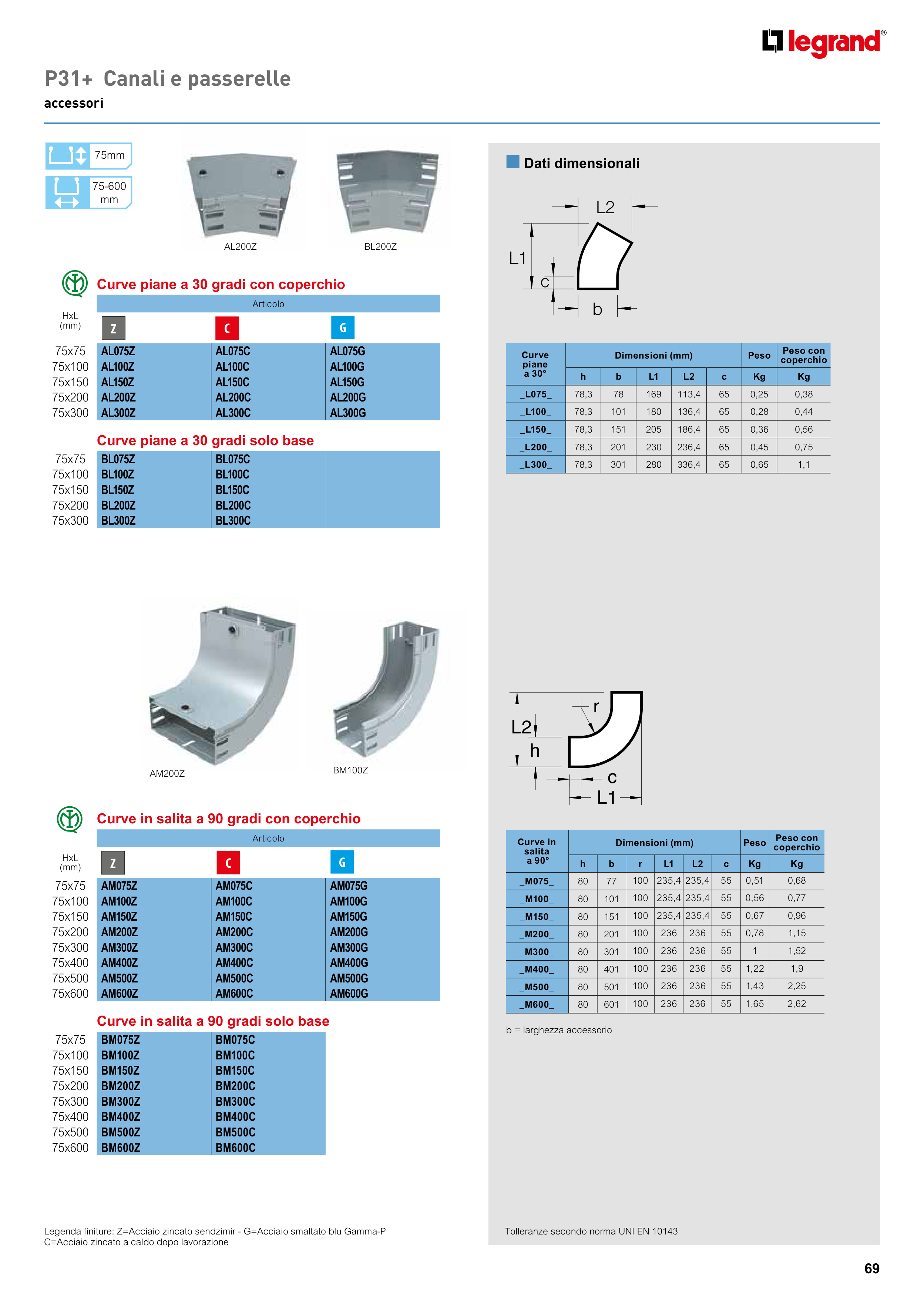 Legenda finiture: Z=Acciaio zincato sendzimir - G=Acciaio smaltato blu Gamma-P
