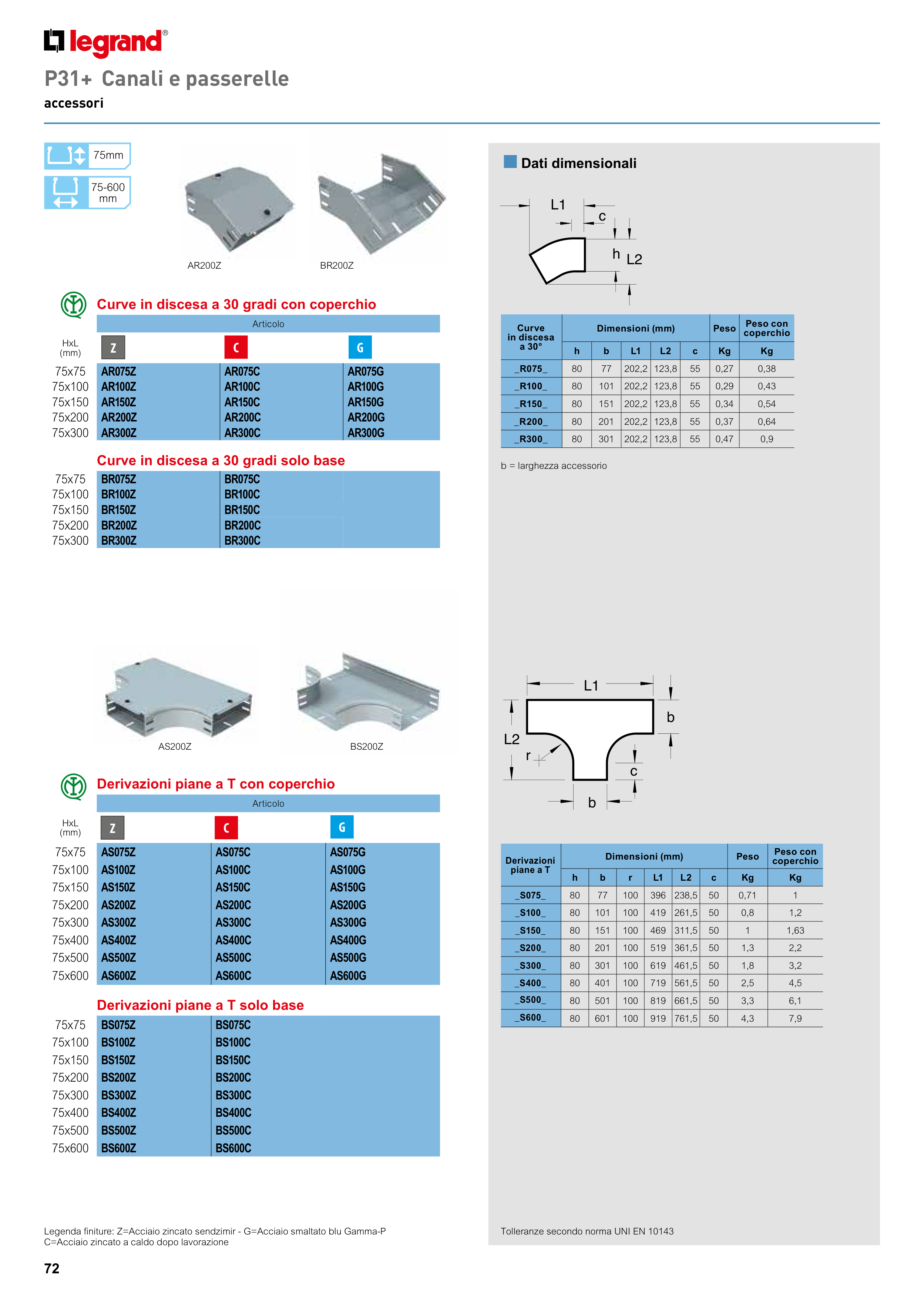 Legenda finiture: Z=Acciaio zincato sendzimir - G=Acciaio smaltato blu Gamma-P