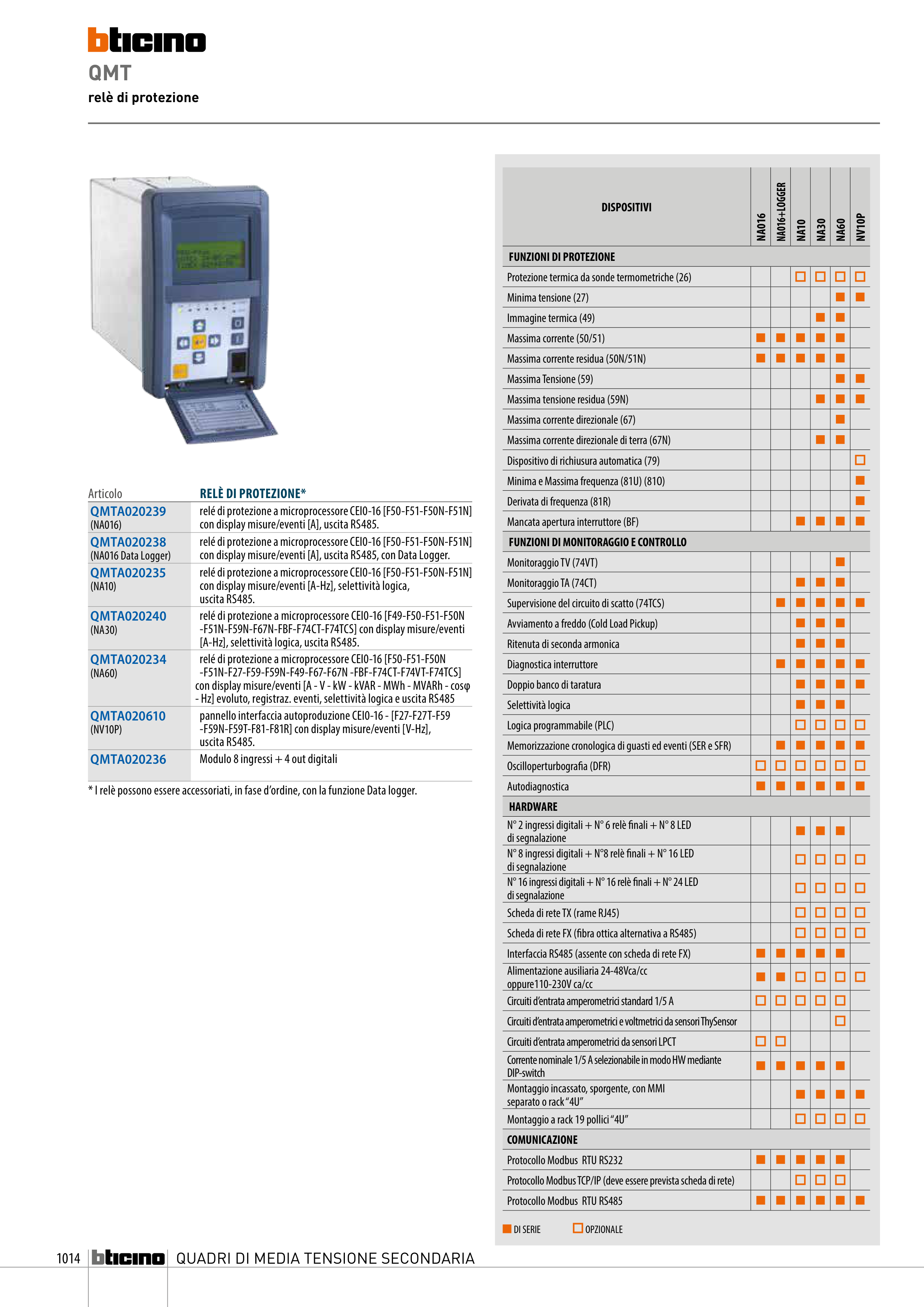 - Hz] evoluto, registraz. eventi, selettività logica e uscita RS485