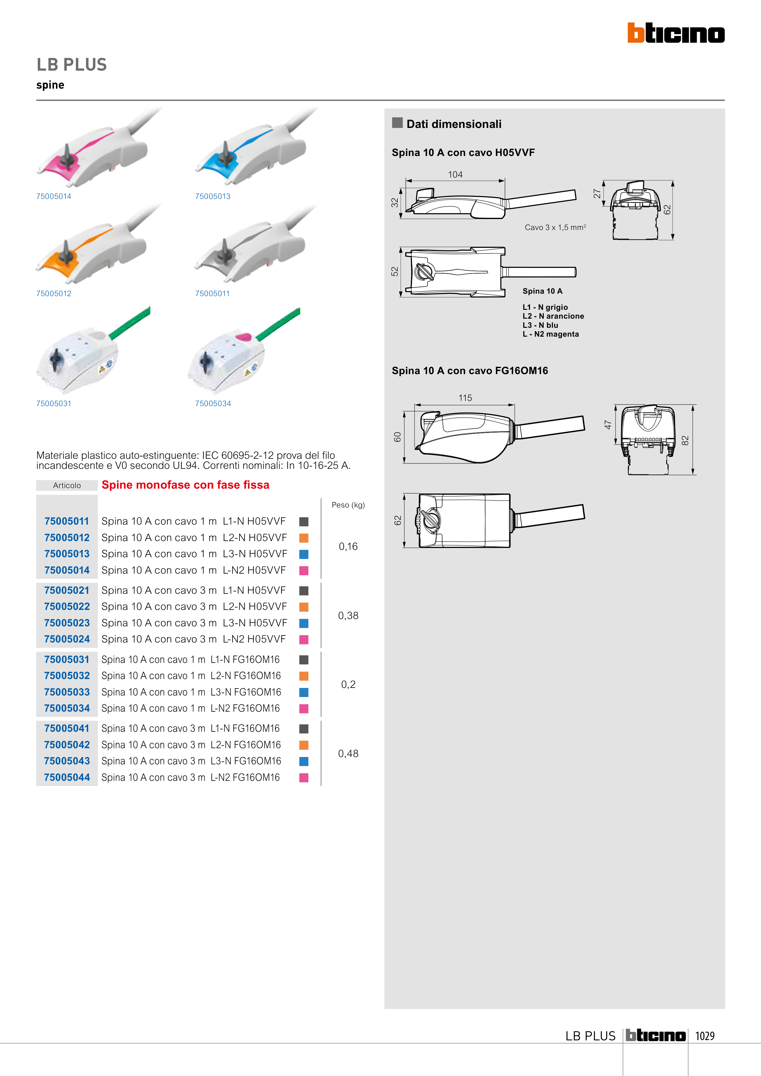 Spina 10 A con cavo 1 m L-N2 FG16OM16