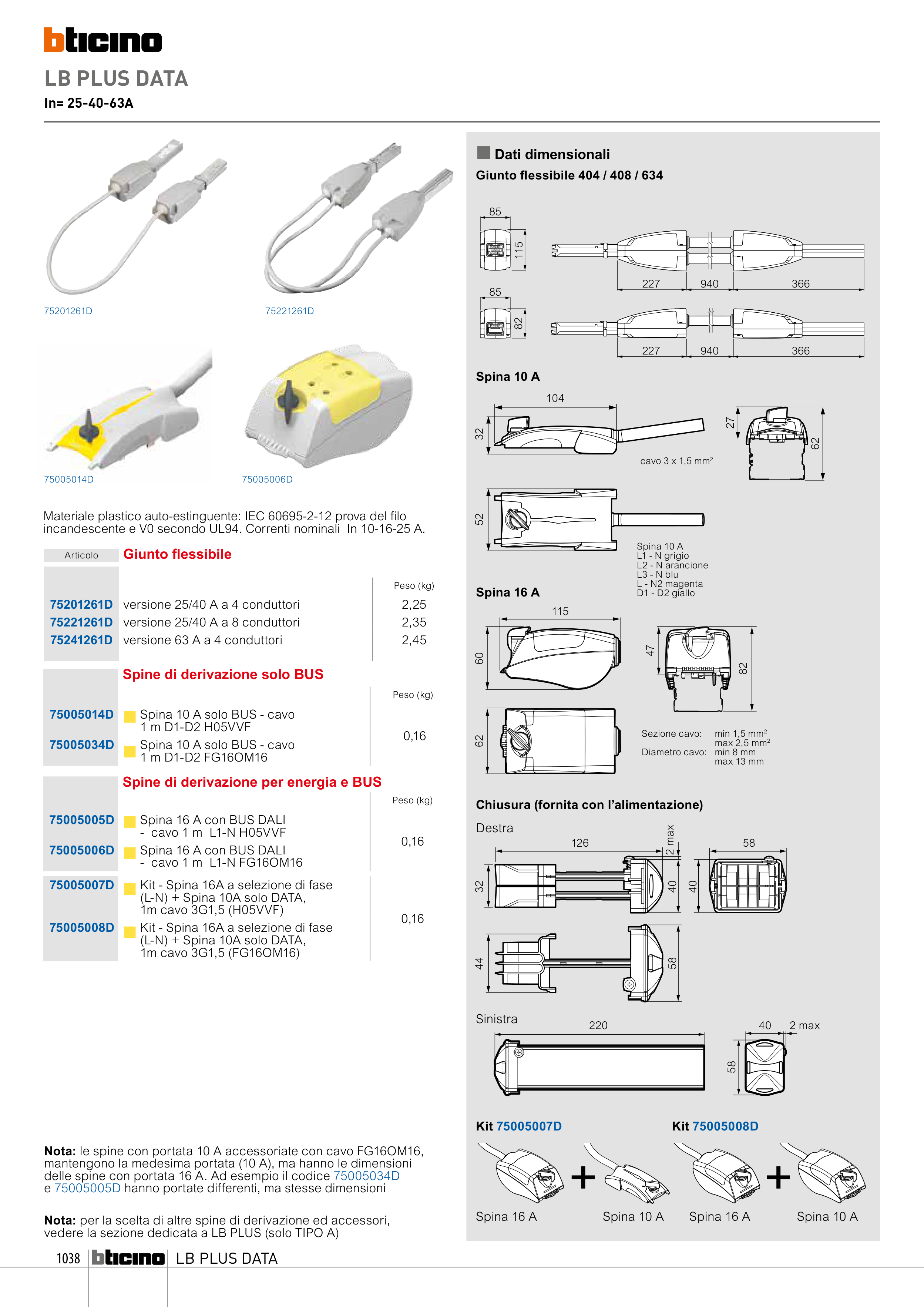 Nota: per la scelta di altre spine di derivazione ed accessori,