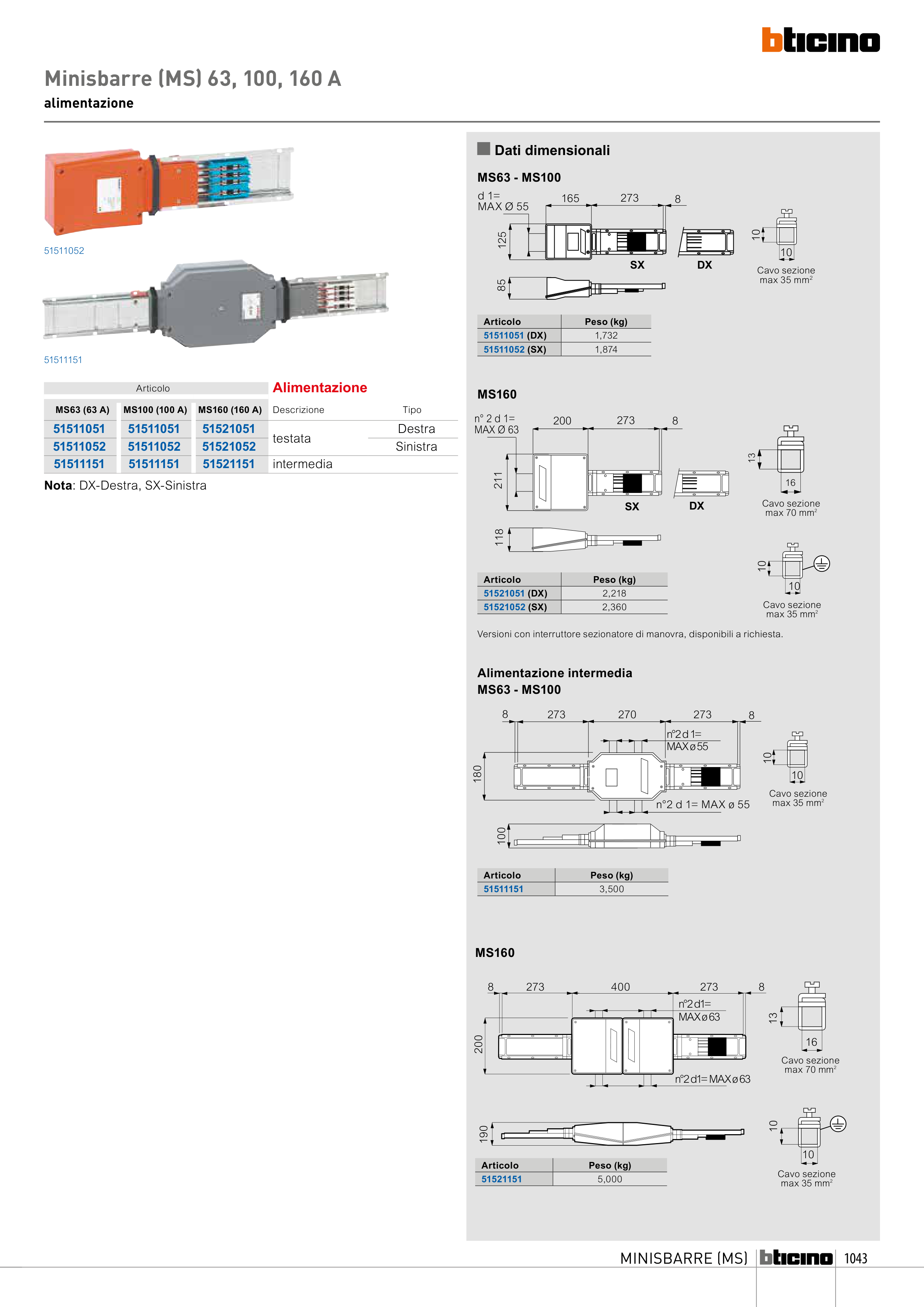 Minisbarre (MS) 63, 100, 160 A