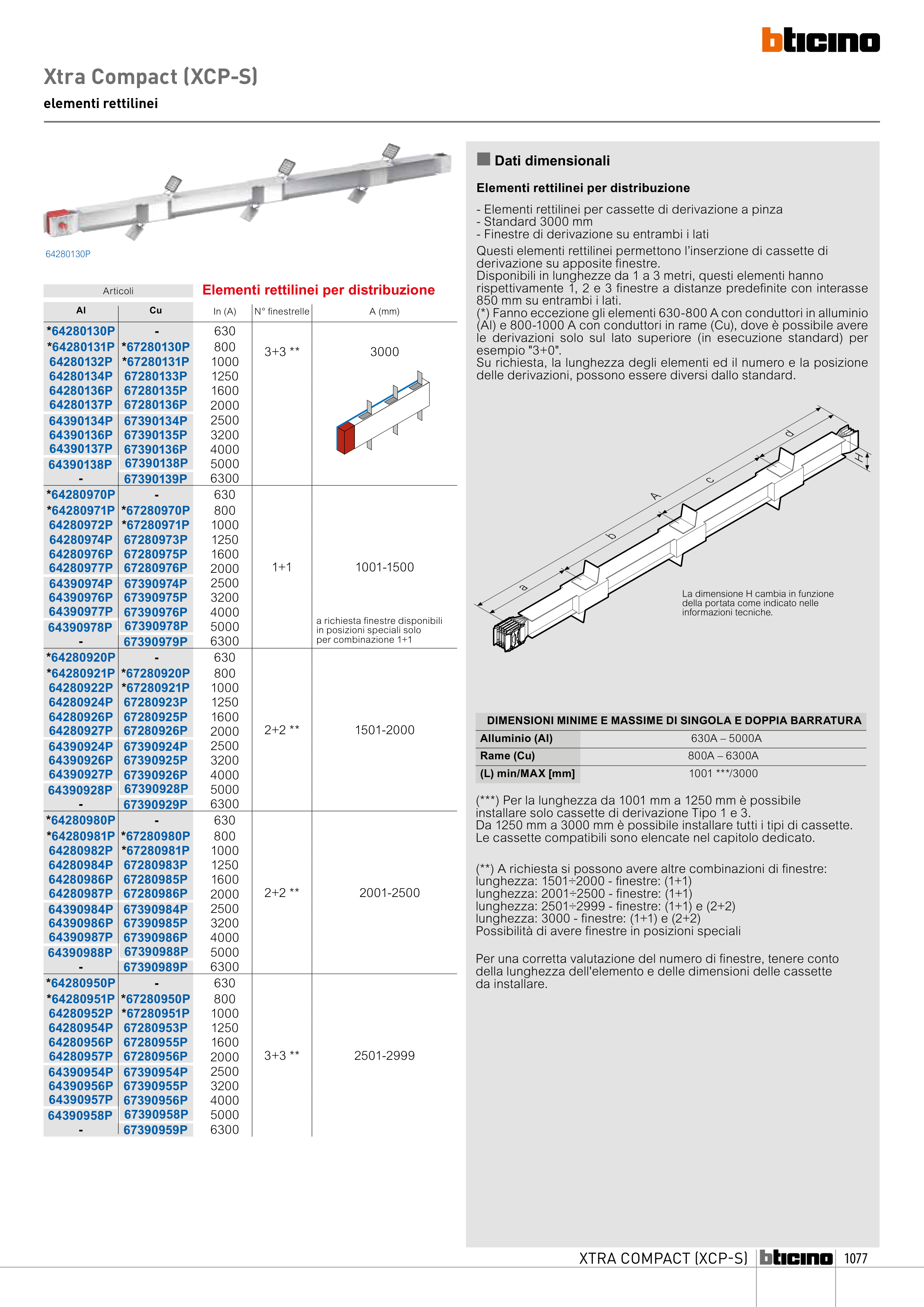 (*) Fanno eccezione gli elementi 630-800 A con conduttori in alluminio