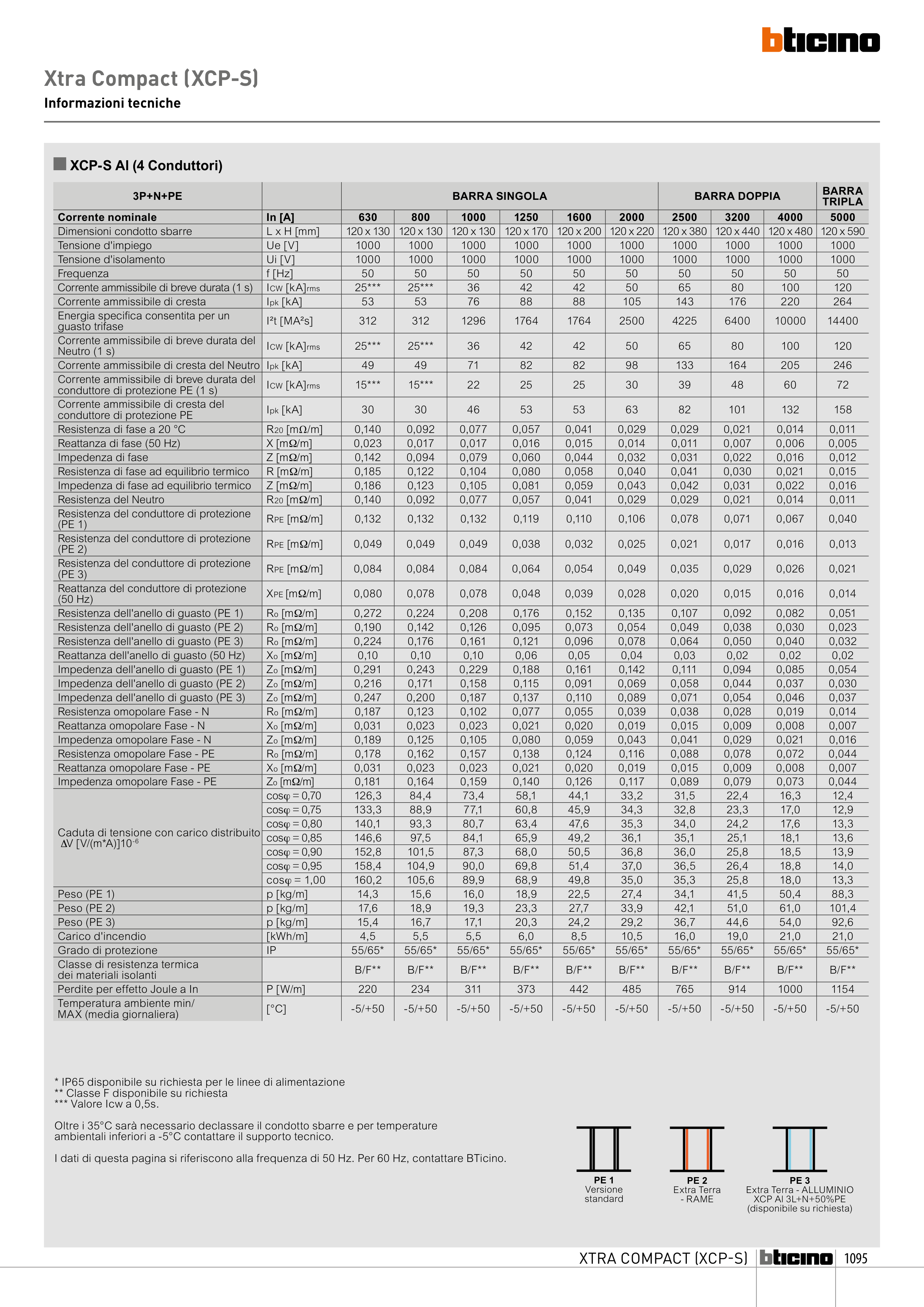 I dati di questa pagina si riferiscono alla frequenza di 50 Hz. Per 60 Hz, contattare BTicino.