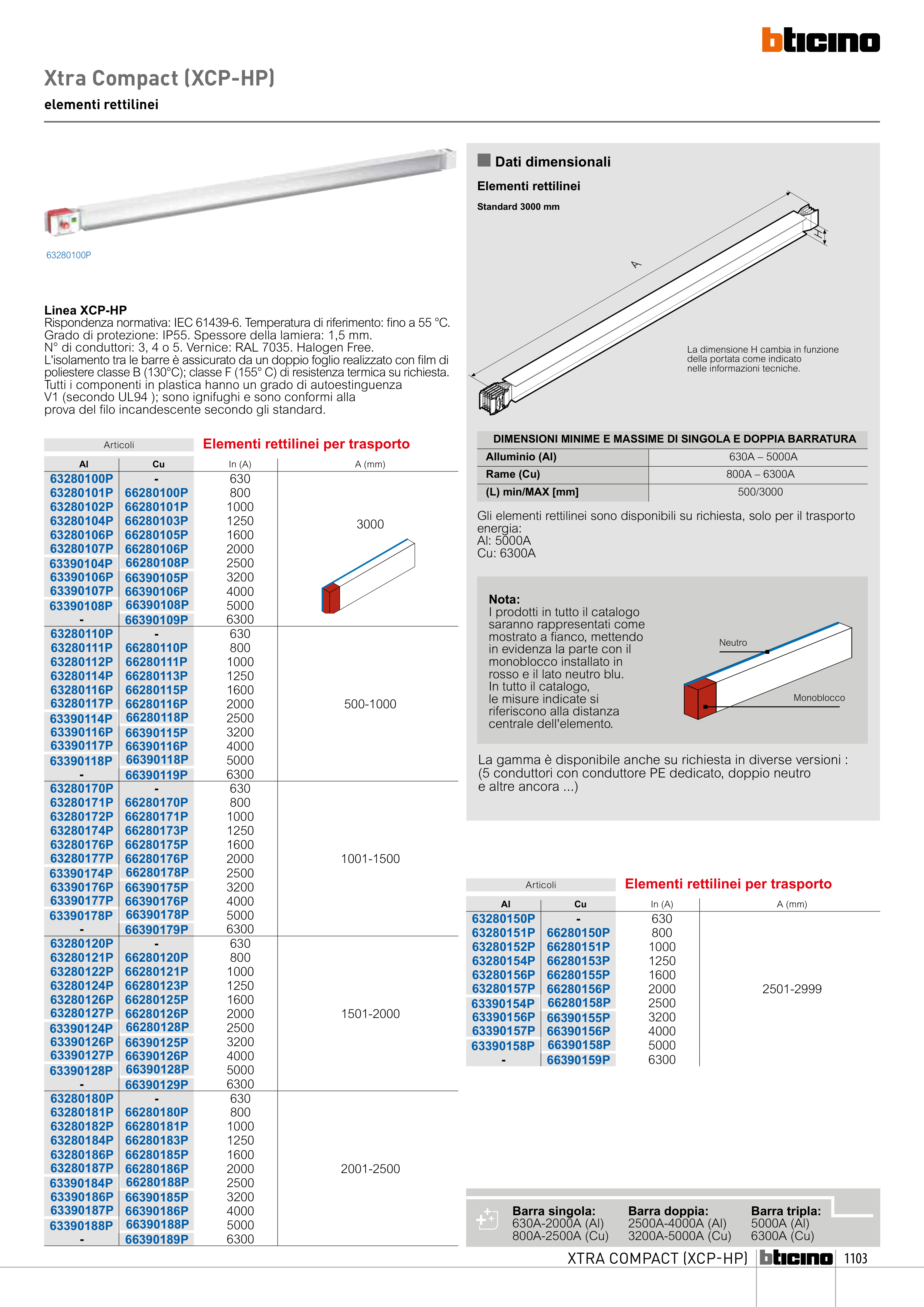 Rispondenza normativa: IEC 61439-6. Temperatura di riferimento: fino a 55 °C.