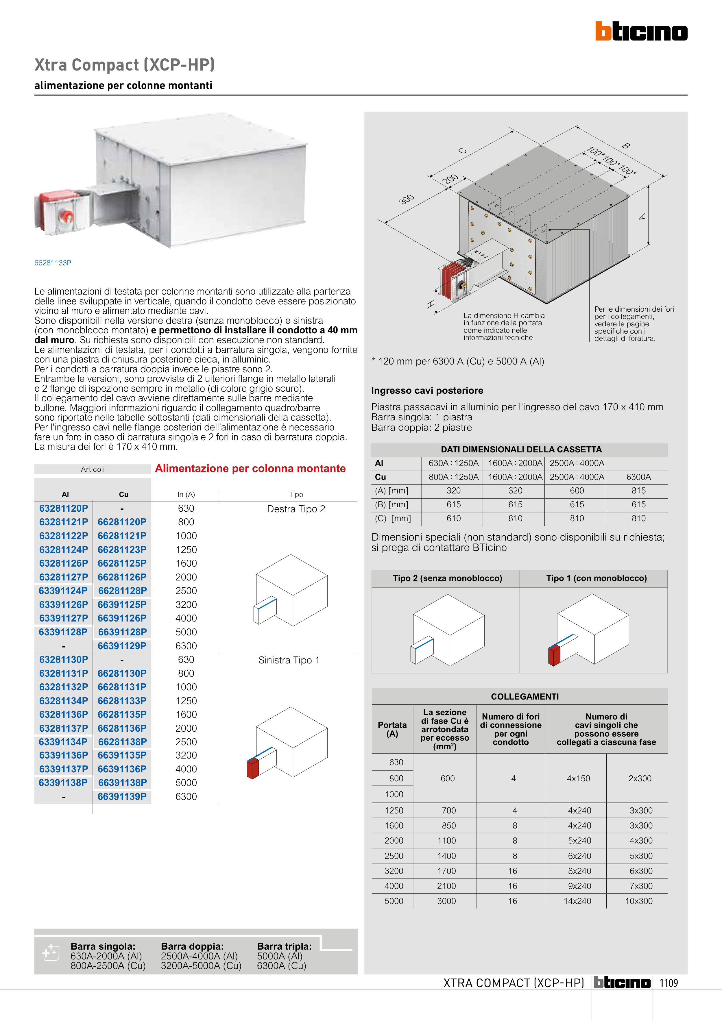 * 120 mm per 6300 A (Cu) e 5000 A (Al)