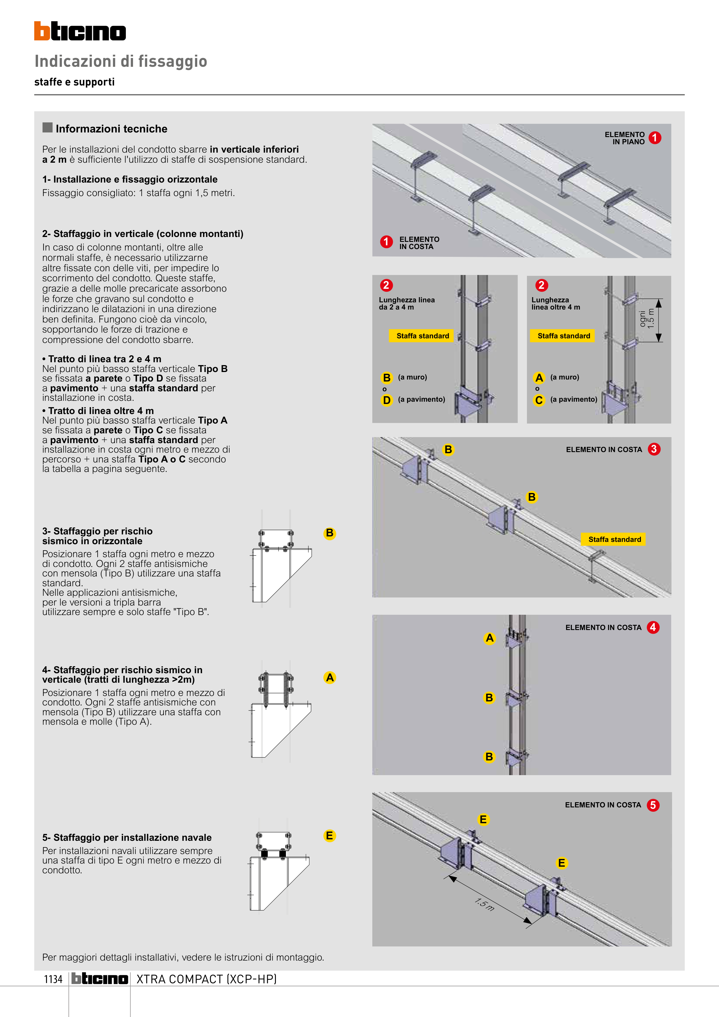 Fissaggio consigliato: 1 staffa ogni 1,5 metri.