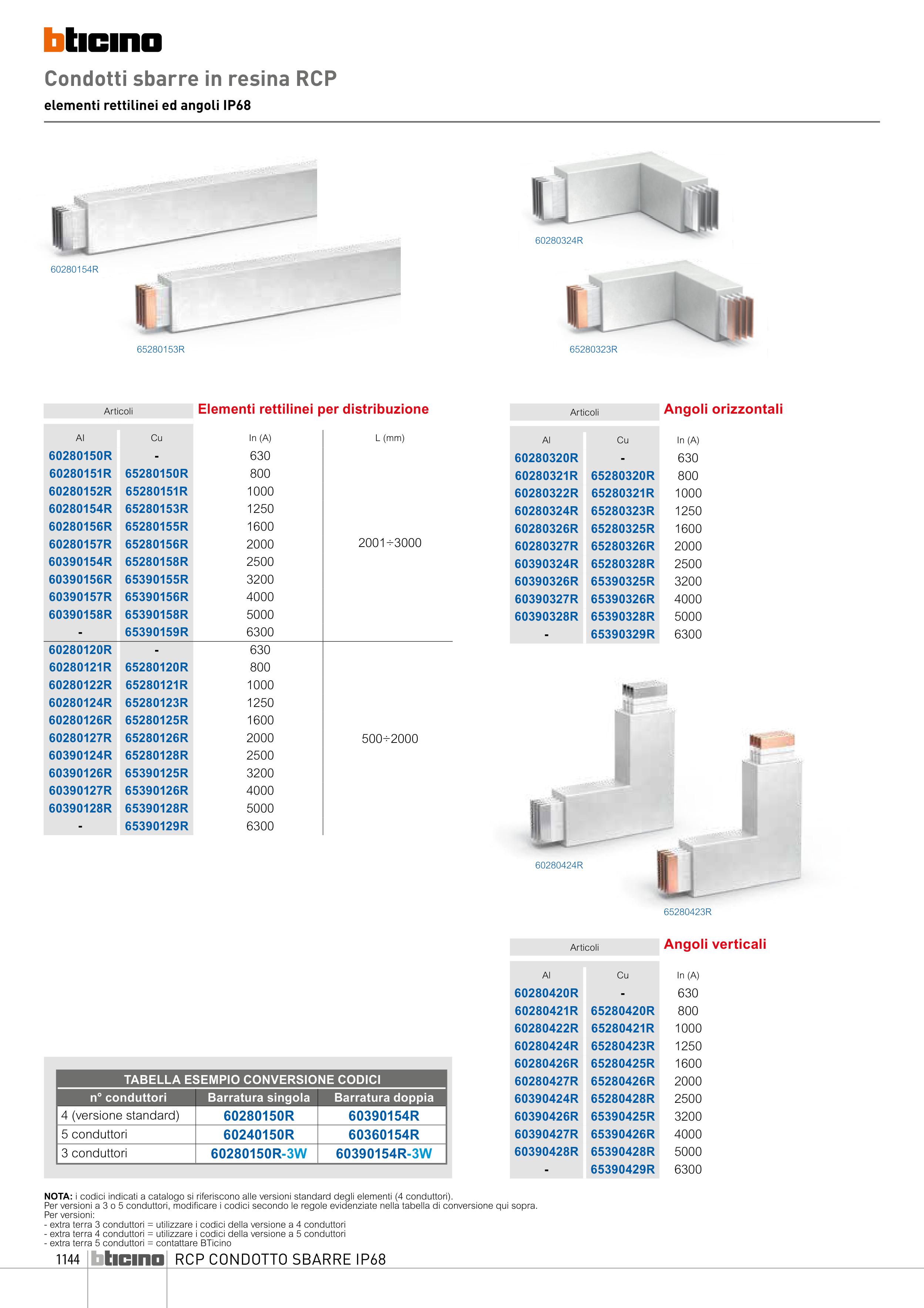 NOTA: i codici indicati a catalogo si riferiscono alle versioni standard degli elementi (4 conduttori).