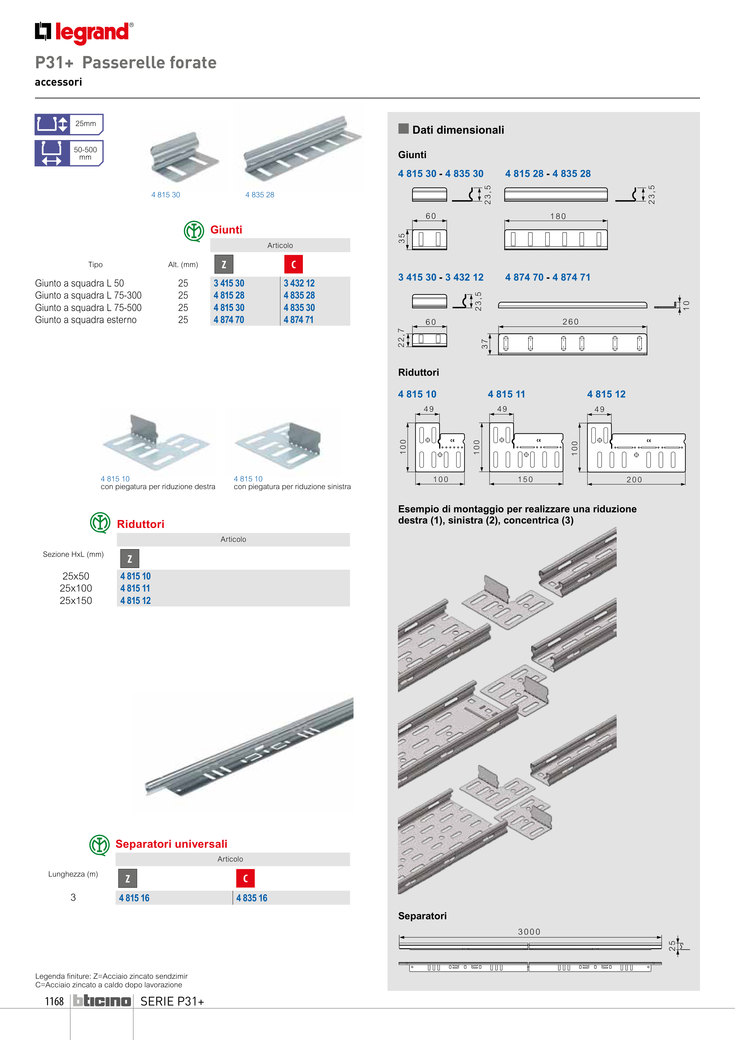 Legenda finiture: Z=Acciaio zincato sendzimir