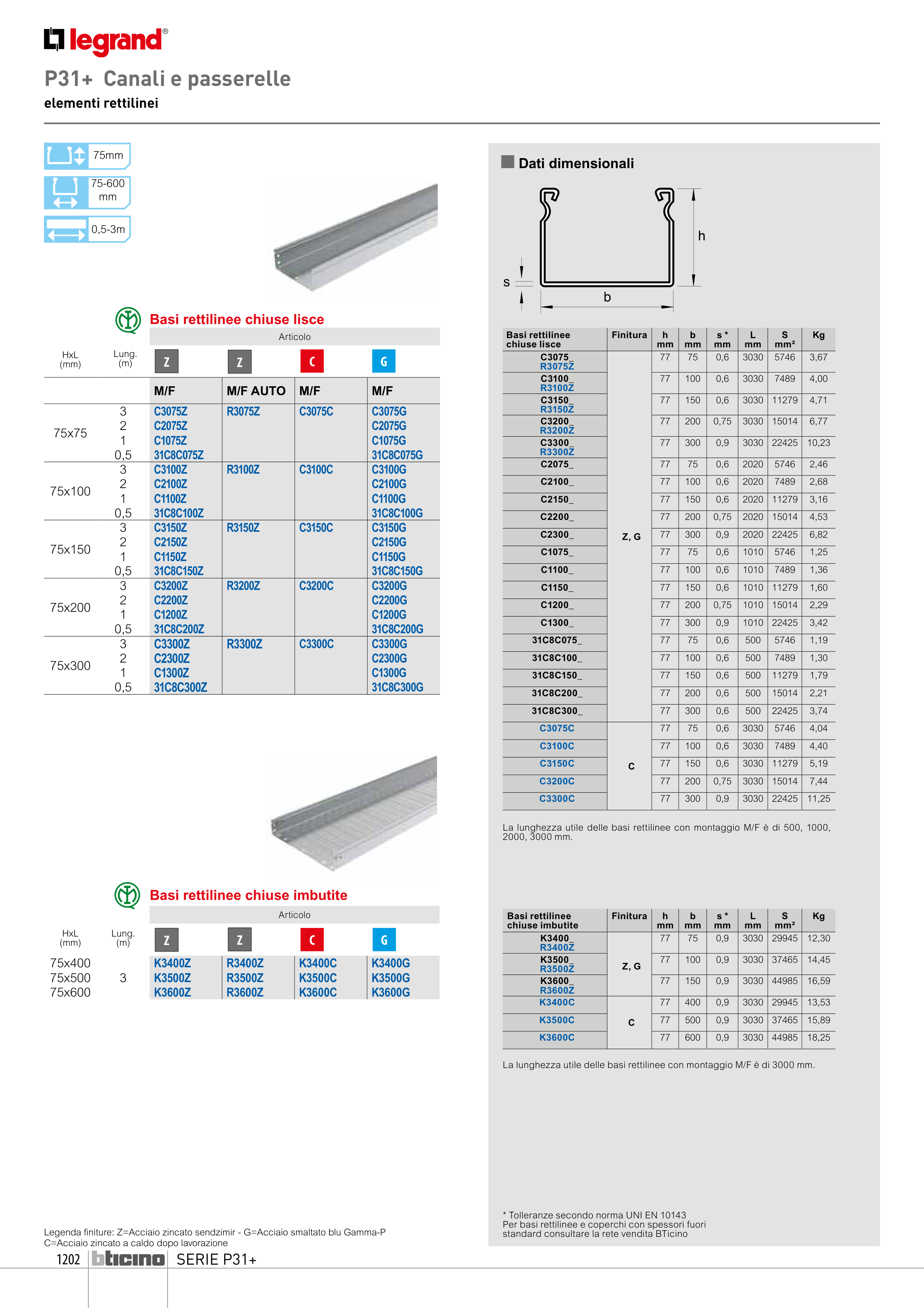 Legenda finiture: Z=Acciaio zincato sendzimir - G=Acciaio smaltato blu Gamma-P