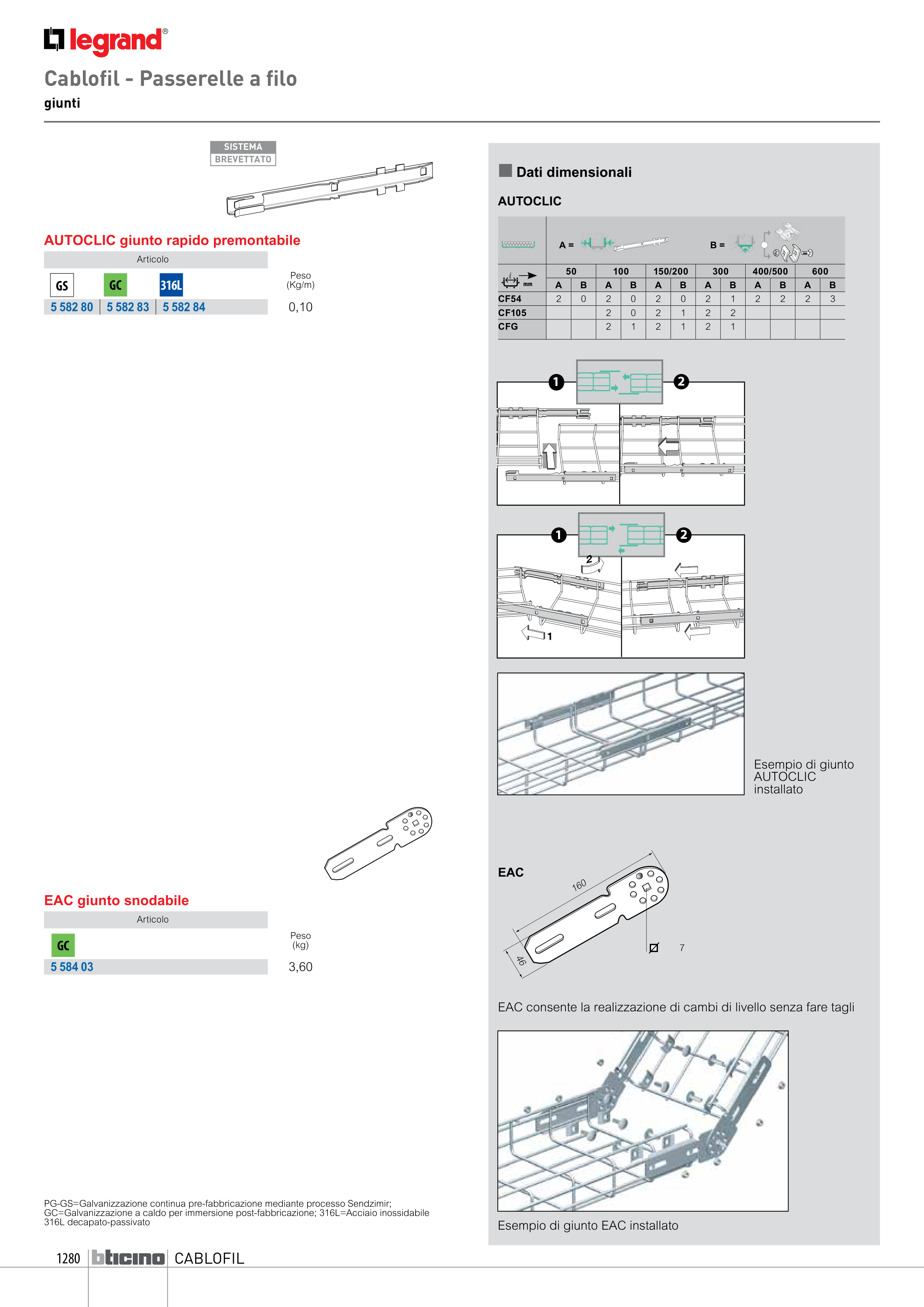 GC=Galvanizzazione a caldo per immersione post-fabbricazione; 316L=Acciaio inossidabile
