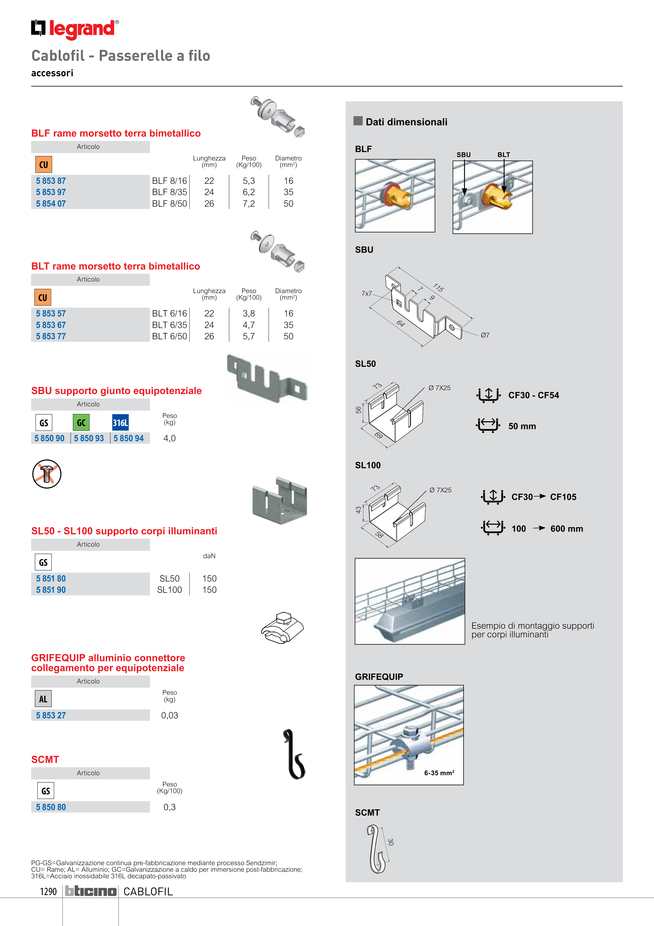 CU= Rame; AL= Alluminio; GC=Galvanizzazione a caldo per immersione post-fabbricazione;