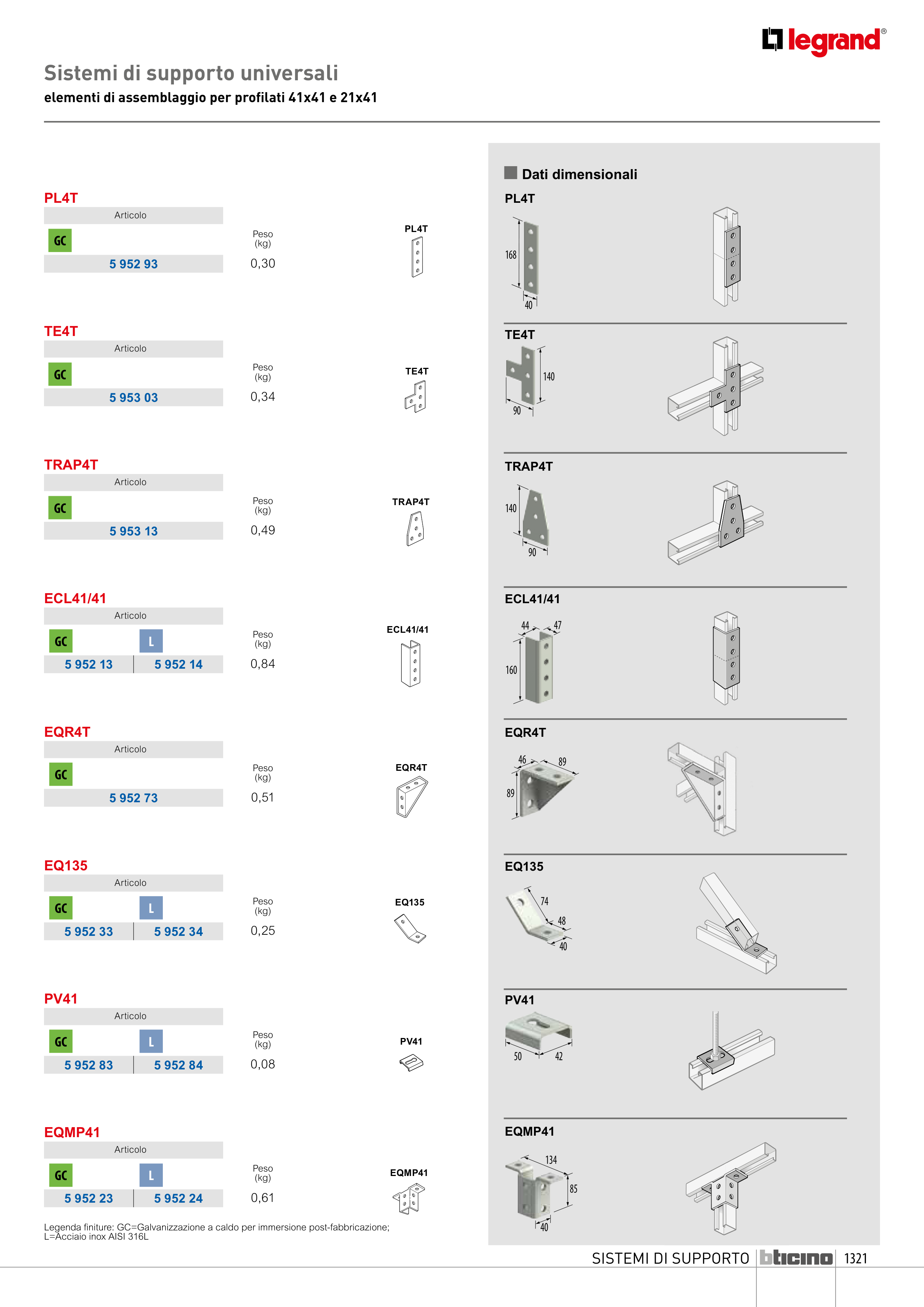 Legenda finiture: GC=Galvanizzazione a caldo per immersione post-fabbricazione;